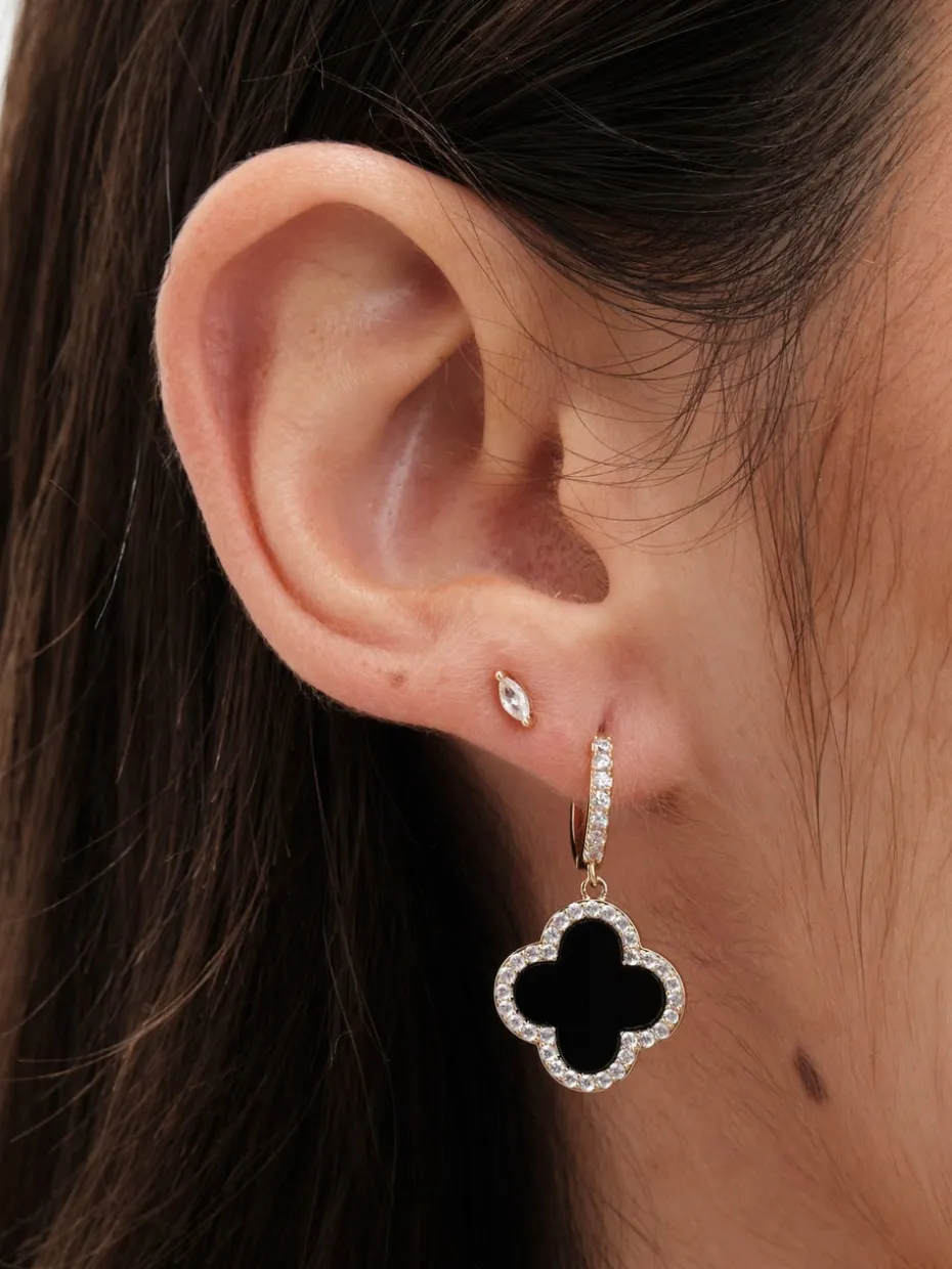 Jon Richard Gold Plated and Jet Clover Huggie Earrings