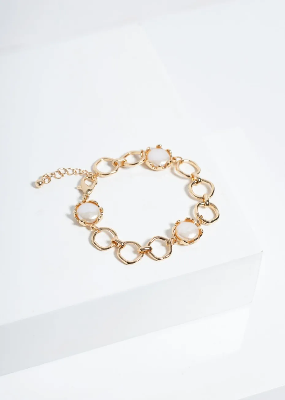 Jon Richard Gold Plated & Baroque Pearl Polished Chain Bracelet