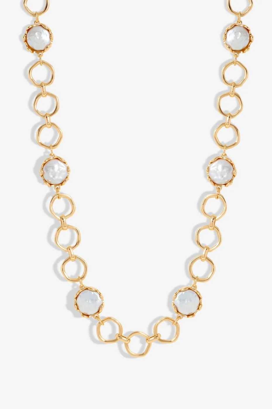 Jon Richard Gold Plated & Baroque Pearl Polished Chain Necklace