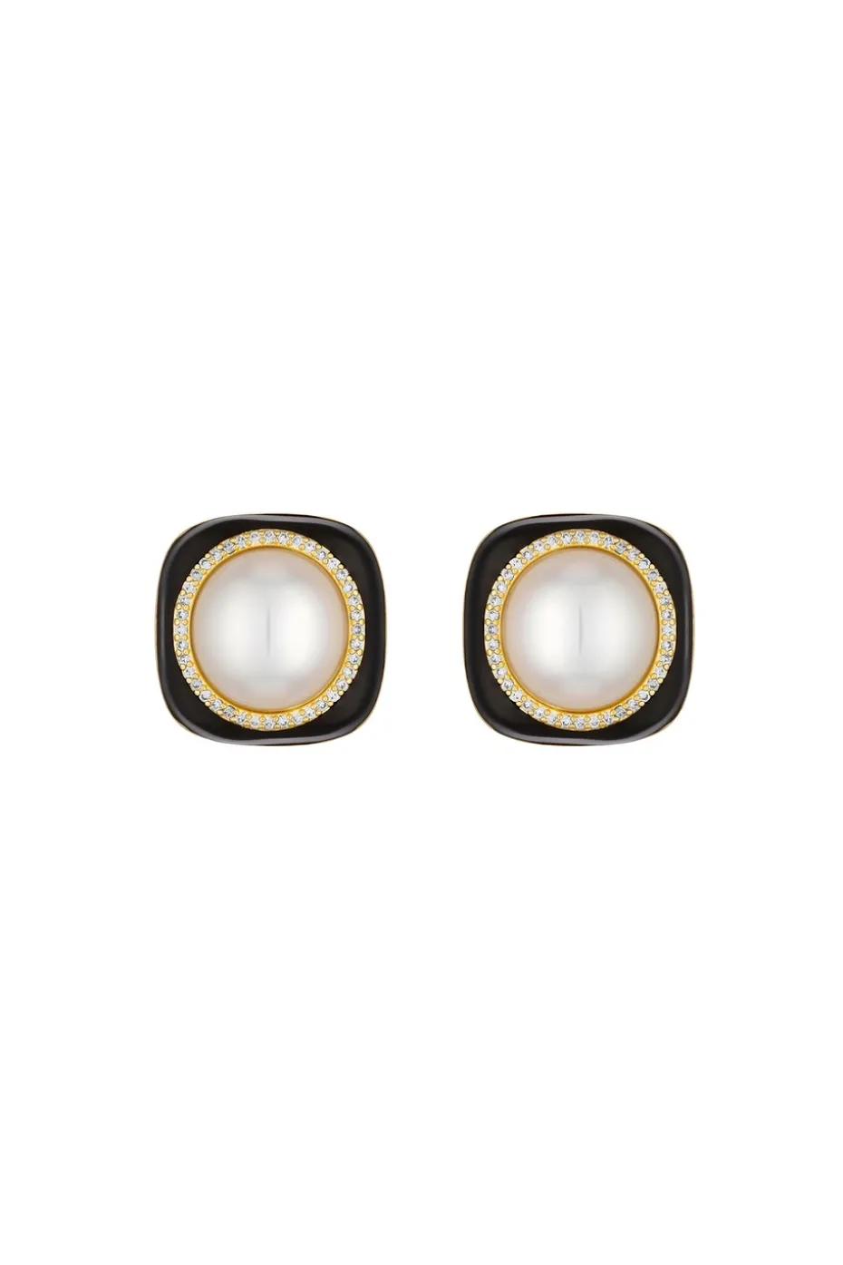 Jon Richard Gold Plated Jet and Pearl Earrings