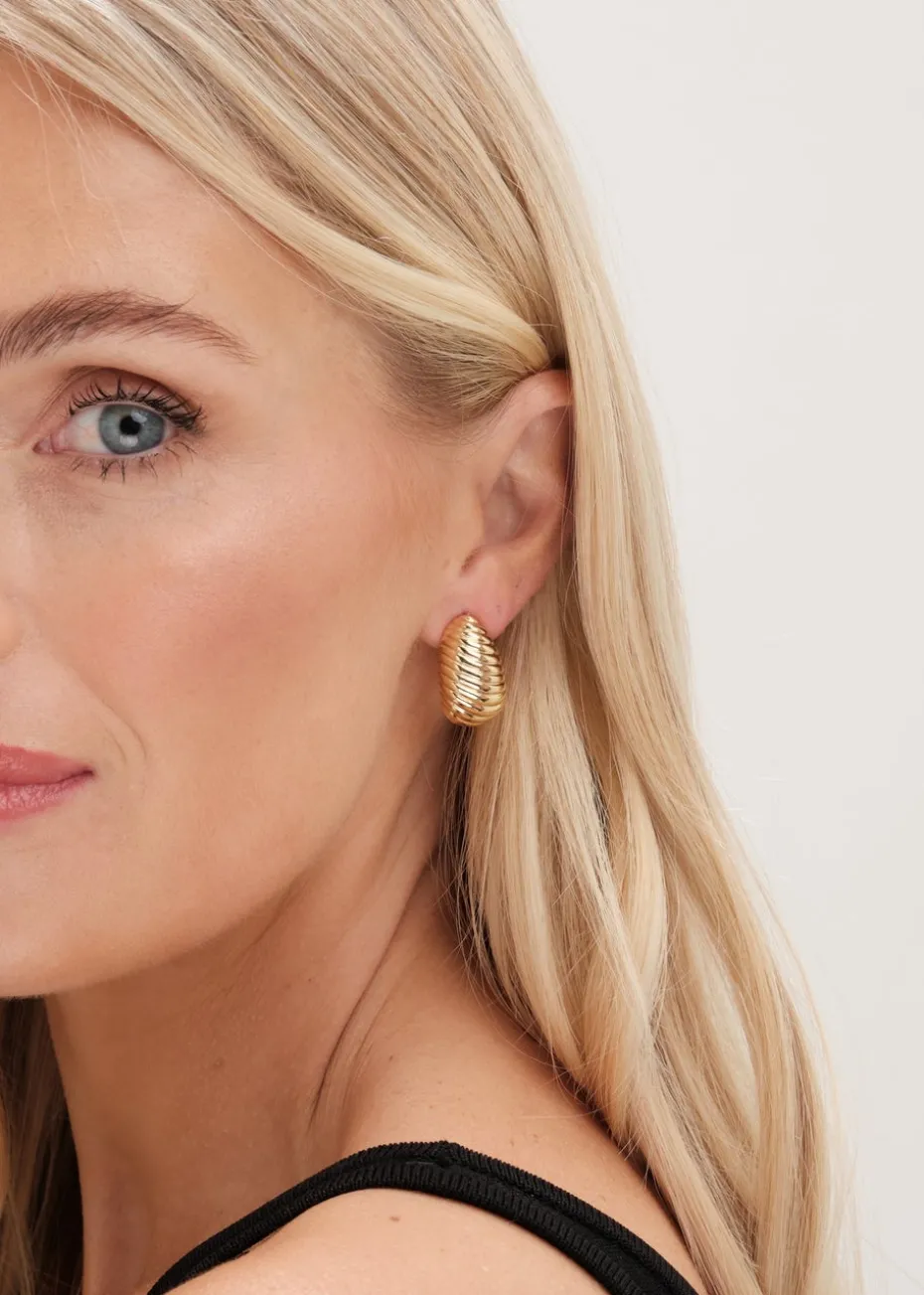 Our Jon Richard Gold Plated Ridge Dome Hoop are a great way to elevate any outfit. The bold, dome design with distinctive ridge details offers a modern yet elegant look. Fastening: 13.5mm. Width Dimension: 13.5mm. Length Dimension: 22.5mm.