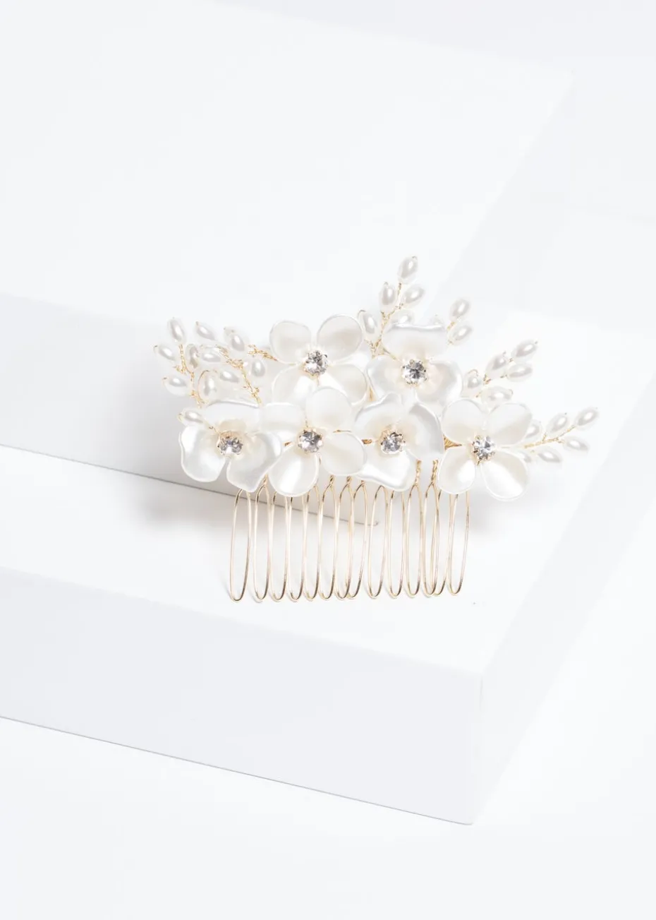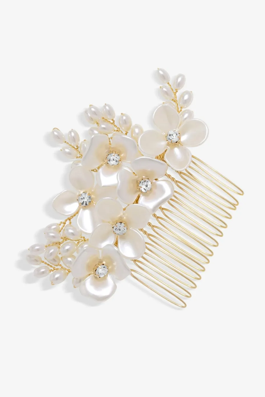 Jon Richard Gold Plated White Floral & Crystal Hair Comb