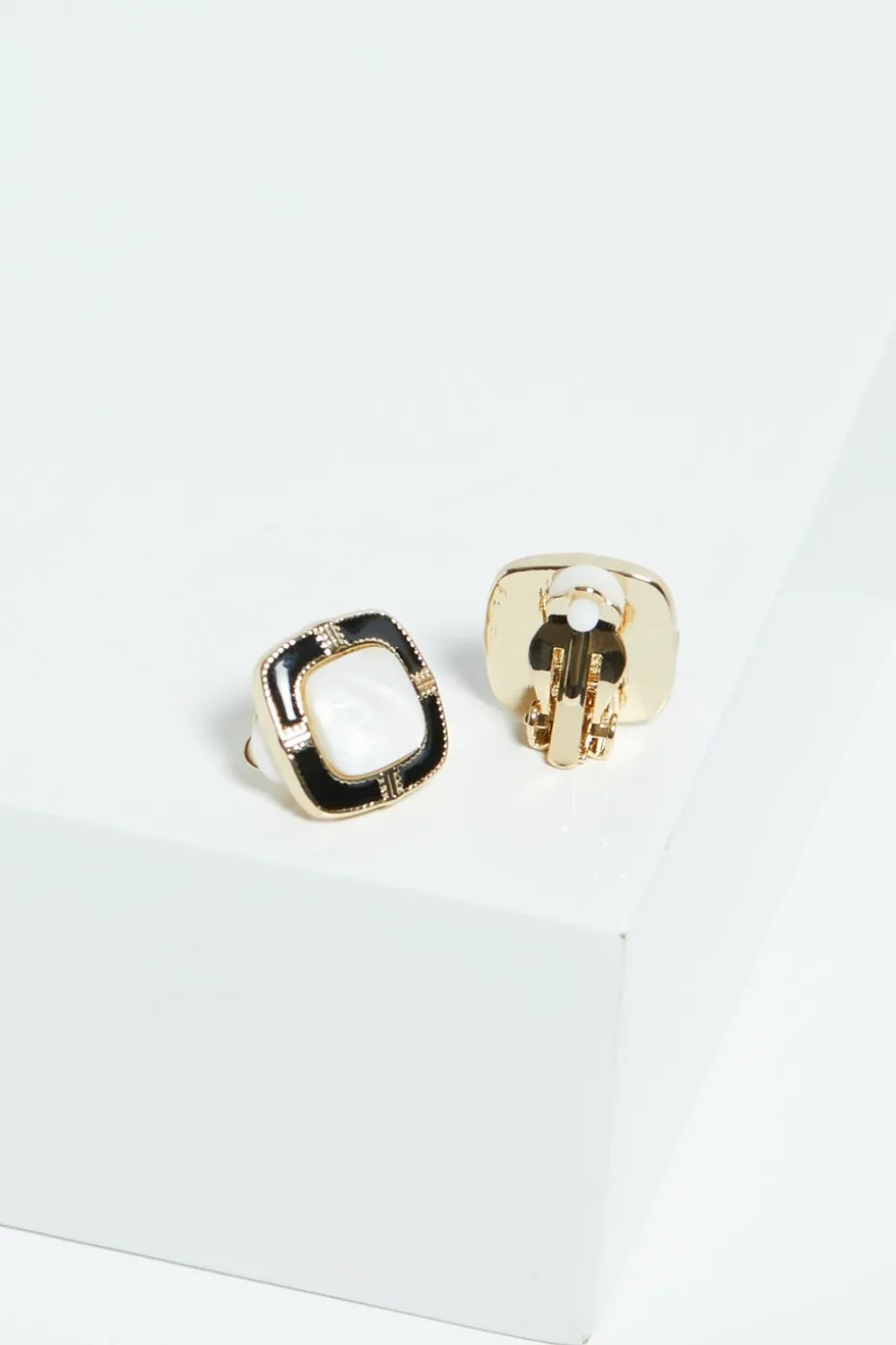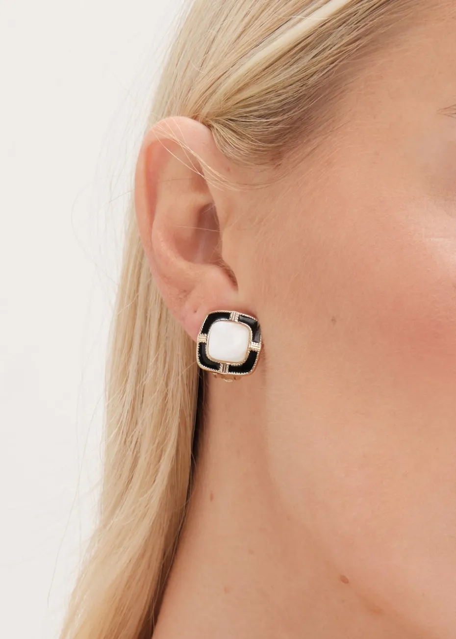 Our Jon Richard Monochrome Clip Earrings features a bold, modern design with a striking contrast of black and white elements. These earrings offer a sophisticated monochrome look, perfect for adding a touch of contemporary elegance to any outfit. The clip-on style ensures a secure and comfortable fit, making them ideal for both everyday wear and special occasions. Fastening: 15mm. Width Dimension: 15mm. Length Dimension: 15mm.