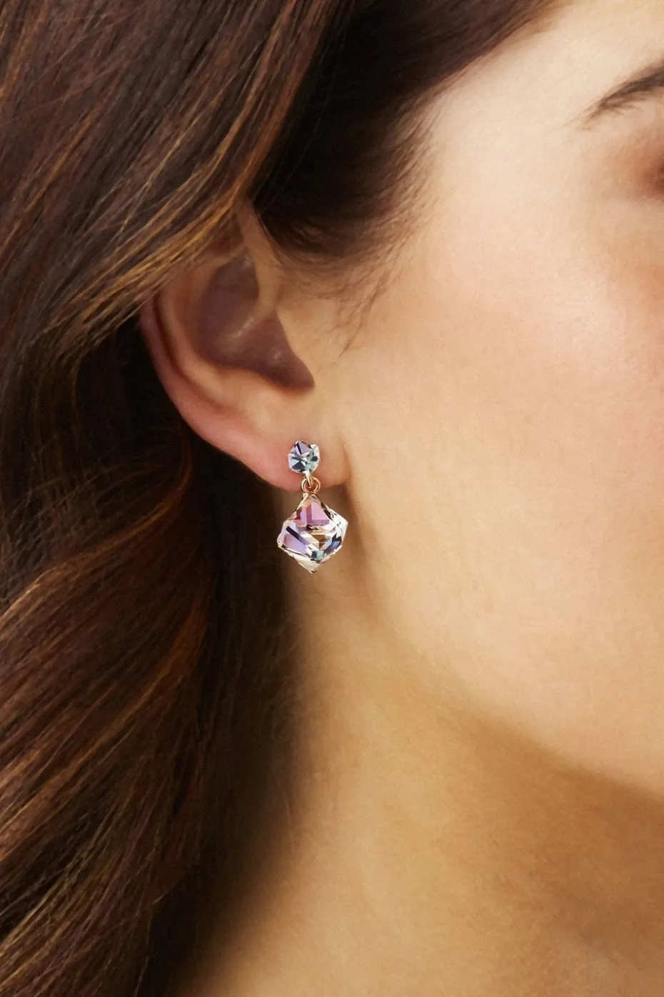 Jon Richard Radiance Collection Rose Gold Plated Aurora Borealis Cube Drop Earrings