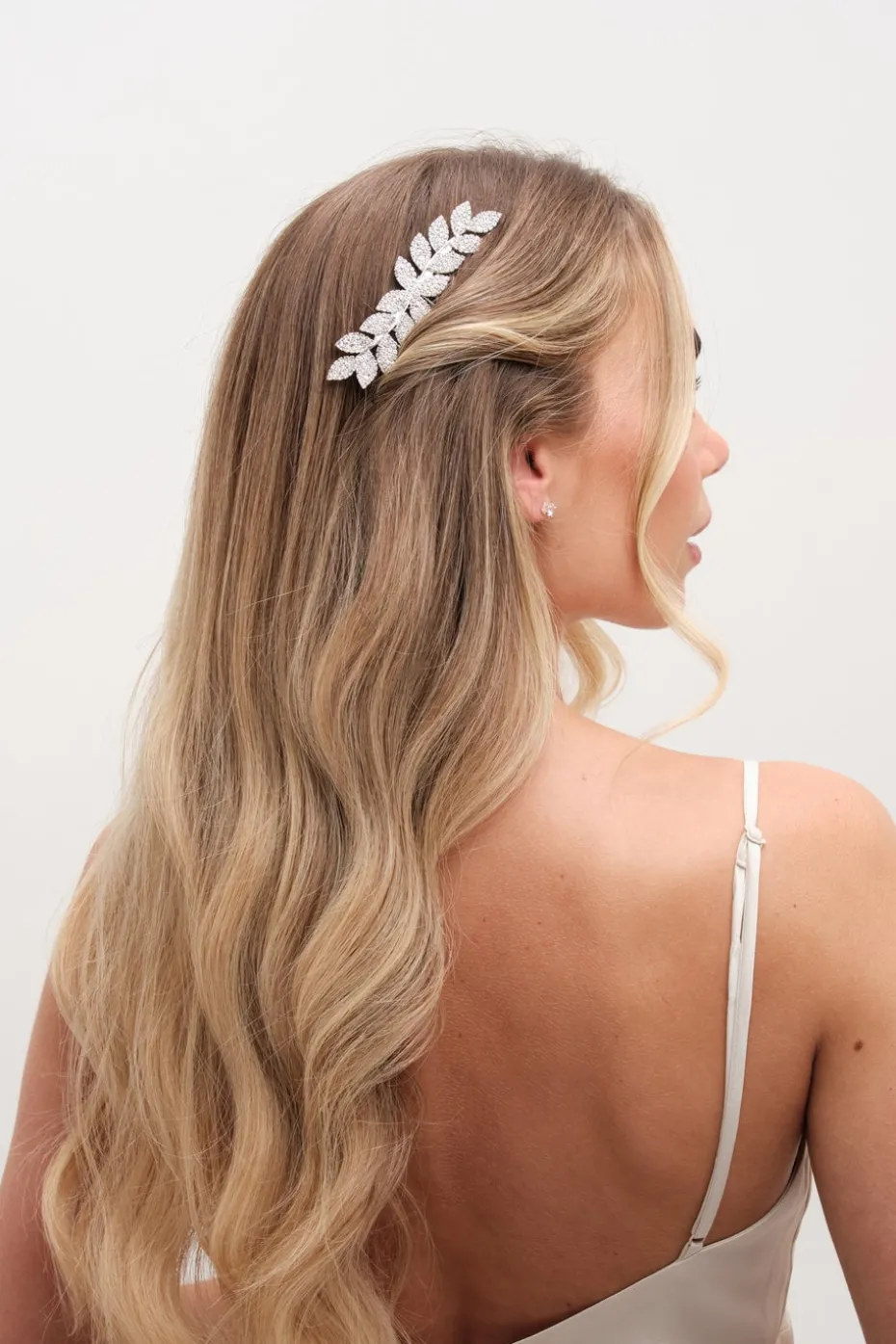Our Jon Richard Silver Plated Crystal Leaf Comb is a delicate and elegant accessory that adds a touch of charm to any hairstyle. Featuring a beautiful crystal leaf design, this is perfect for creating a classic and sophisticated look. Fastening: 25mm. Width Dimension: 25mm. Length Dimension: 45mm.