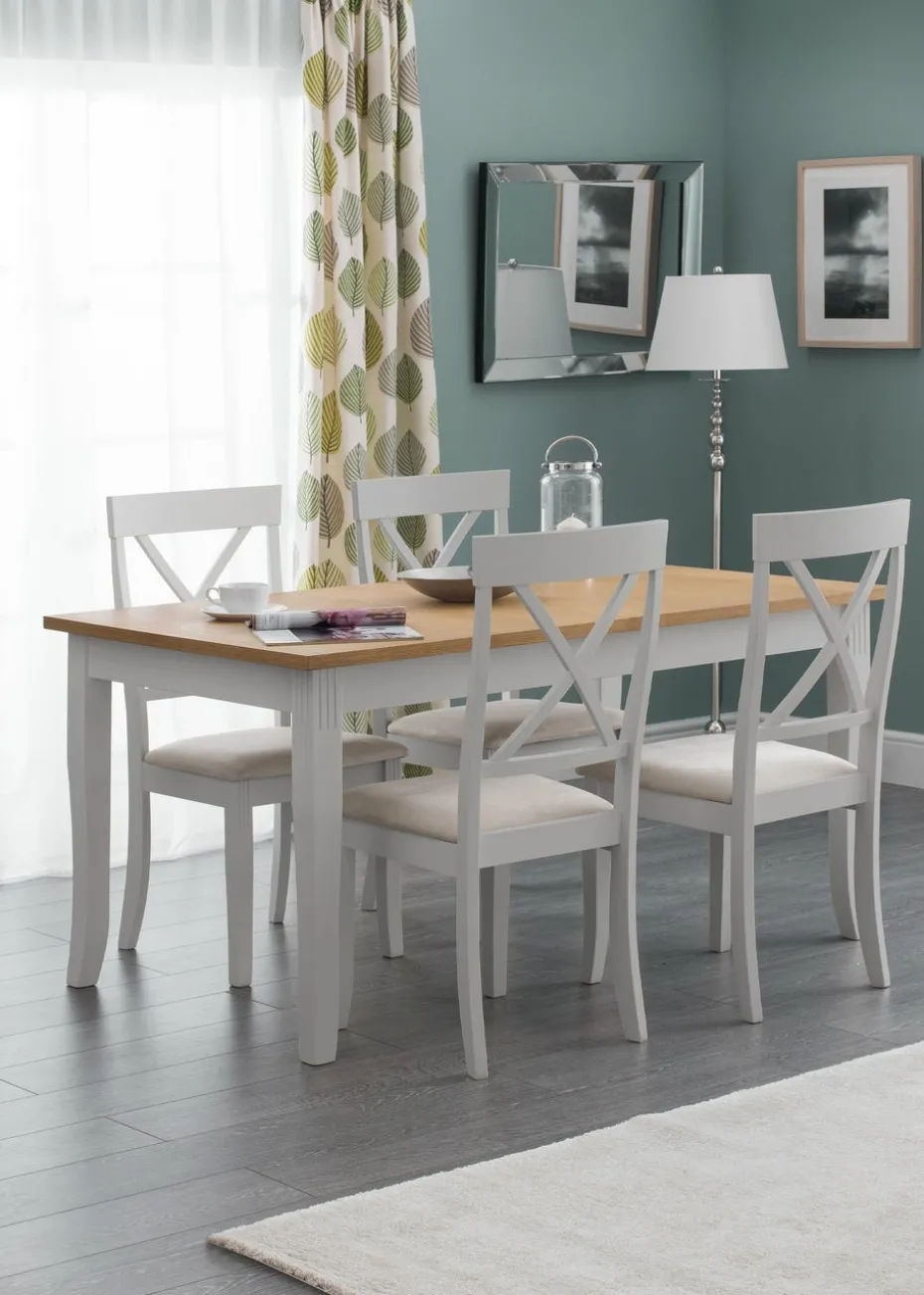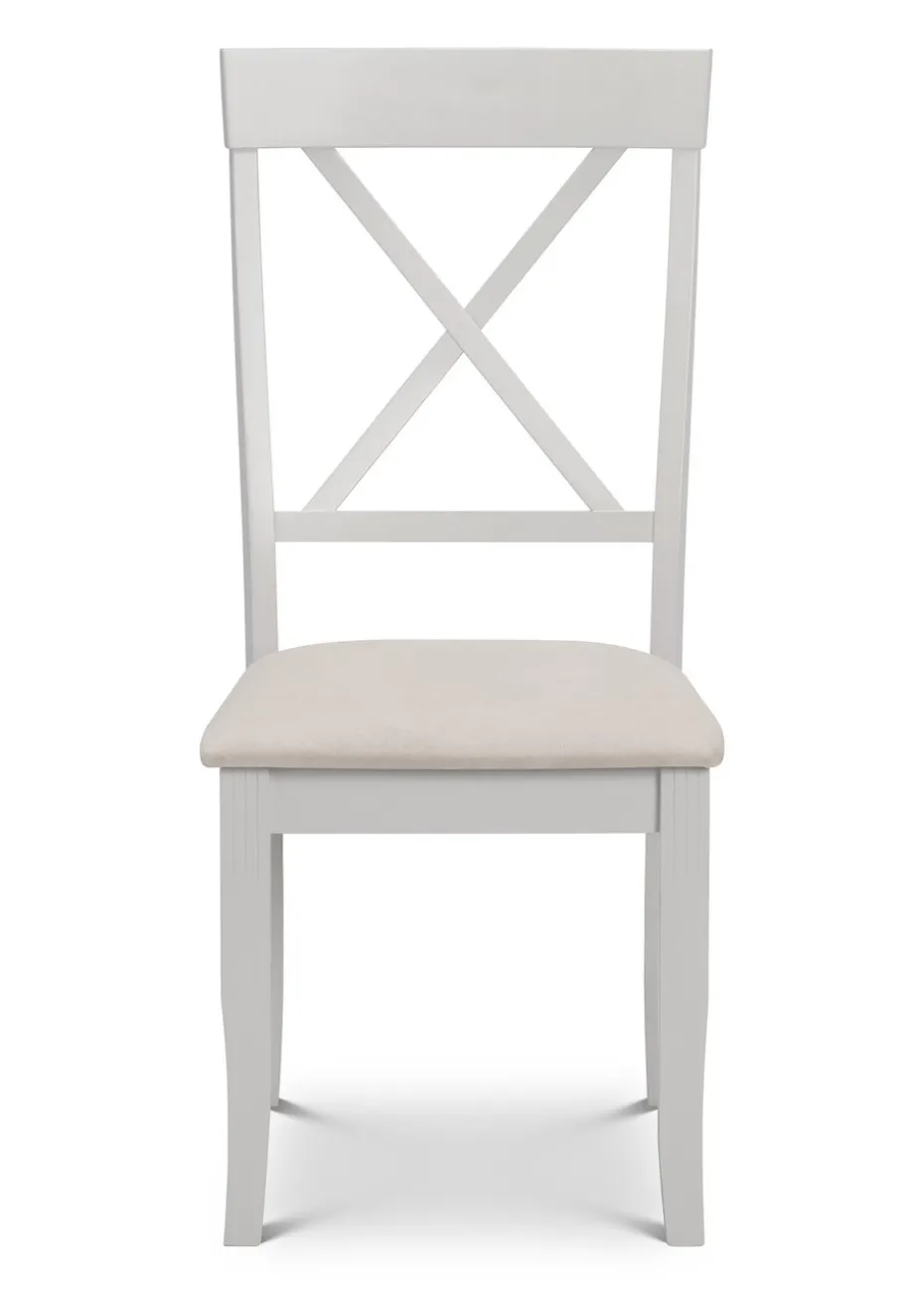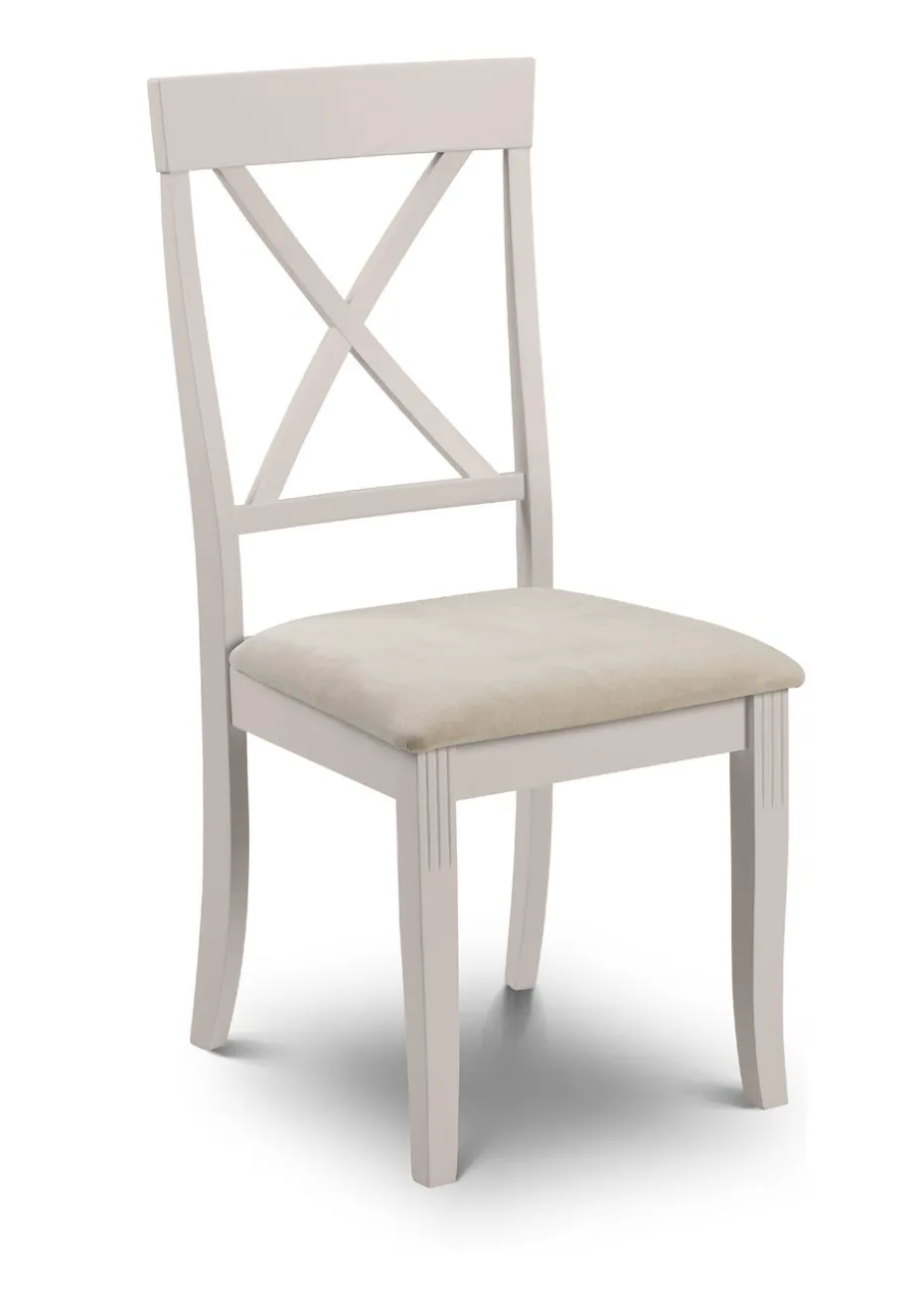 Get comfy with the Davenport dining chair. Crafted from solid rubberwood and a ivory faux suede upholstered seat, padded for you to reach maximum comfort, this is the ideal dining chair to please your dinner guests. In an elegant grey lacquered finish, suitable for any dining room decor. A wide range of co-ordinating items are available in the Julian Bowen Davenport collection.