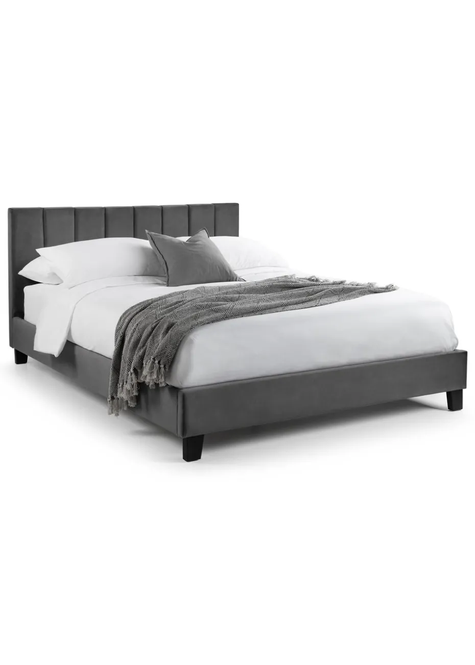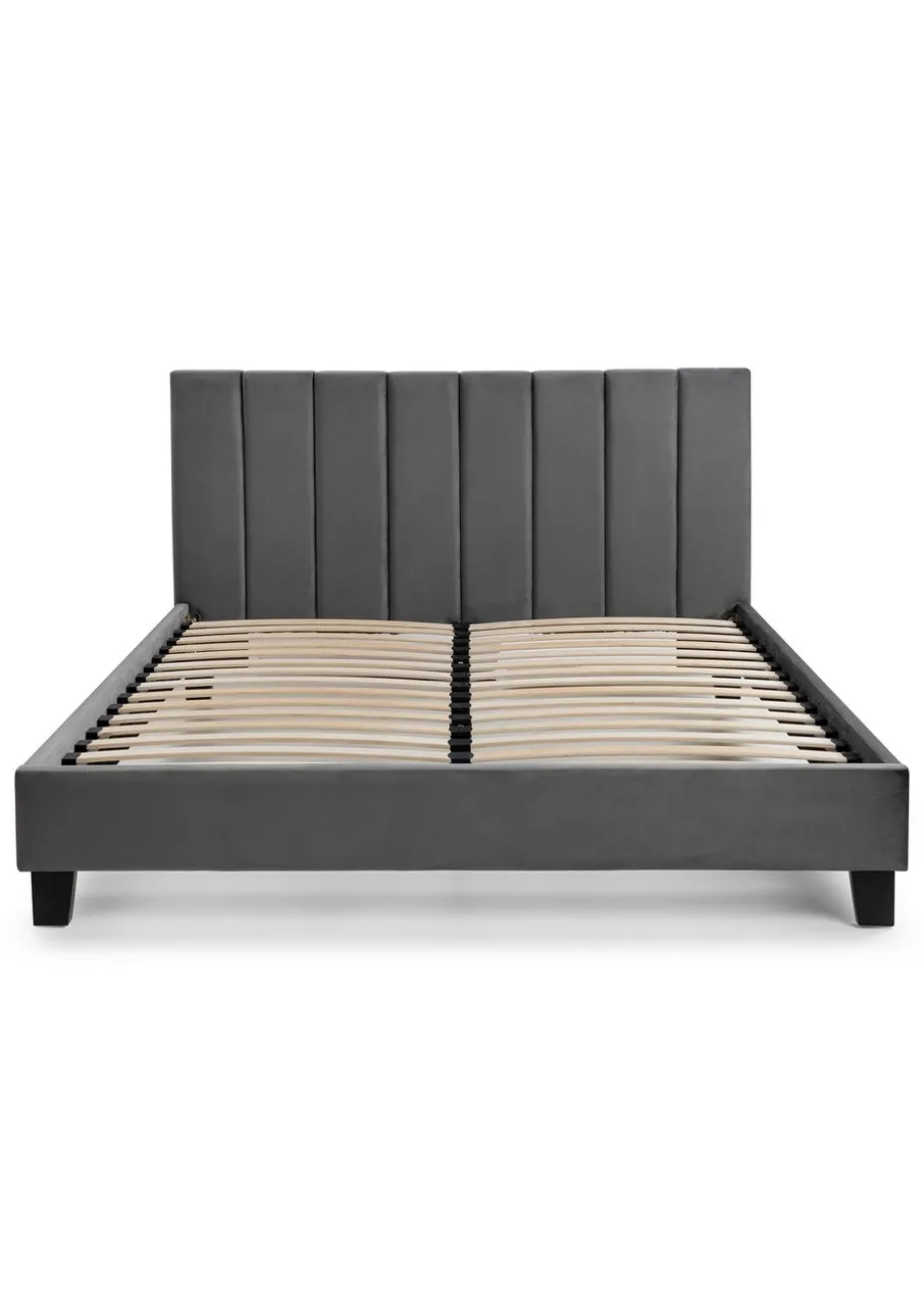 Featuring a gorgeous fluted headboard, the Rosa Velvet Bed exudes style and comfort. Finished in an attractive grey velvet with black legs makes it the perfect focal point in any bedroom. (MATTRESS NOT INCLUDED)