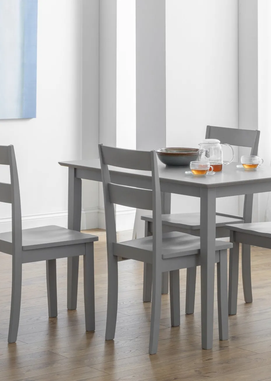 Stylish yet pratical, the Kobe Dining Chair is a chic addition to any home. Finished in a modern grey lacquer, this dining chair will make a stunning addition in a wide range of dining room decor. The perfect match for the Julian Bowen Kobe Rectangular Table, creating a compact dining set suitable for those smaller kitchen areas.