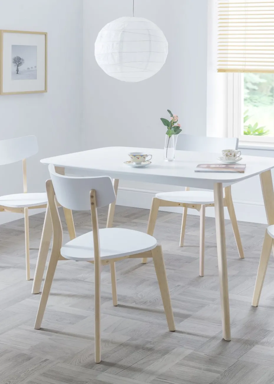A timeless retro design reflecting the style of the 1950’s. The Casa Dining Chair has White Lacquered Seat and Back Panels with Limed Oak Effect Legs. Crafted from solid Malaysian hardwood and MDF ensuring long lasting durability.