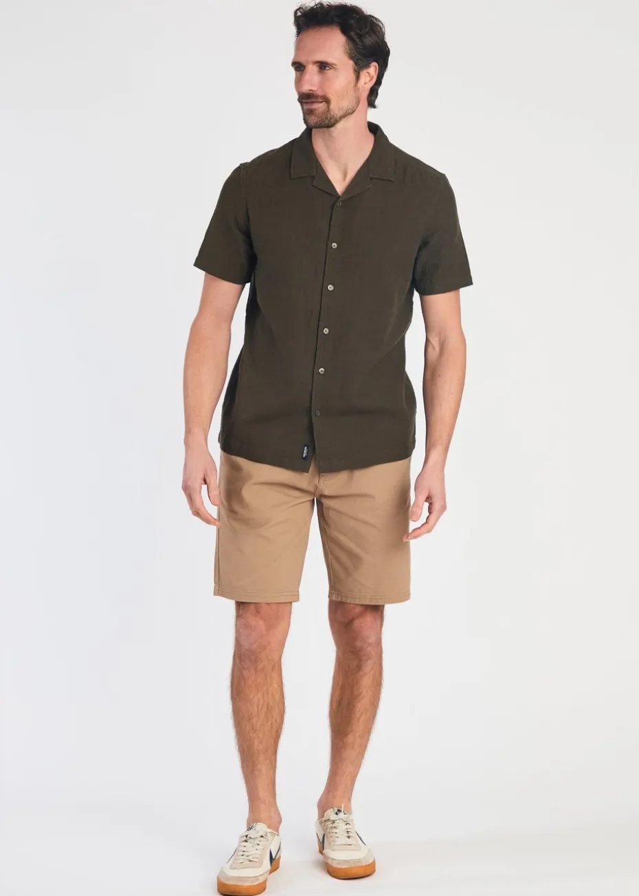 Kensington Eastside Khaki Cotton Textured Short Sleeve Shirt