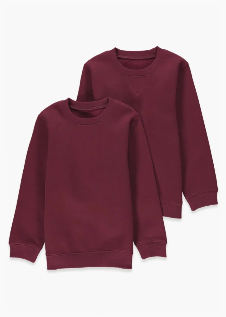 Crafted with soft cotton and polyester, the burgundy school sweatshirts feature a ribbed crew neckline, together with cuffed long sleeves. Perfect for layering over school shirts and polos alike.