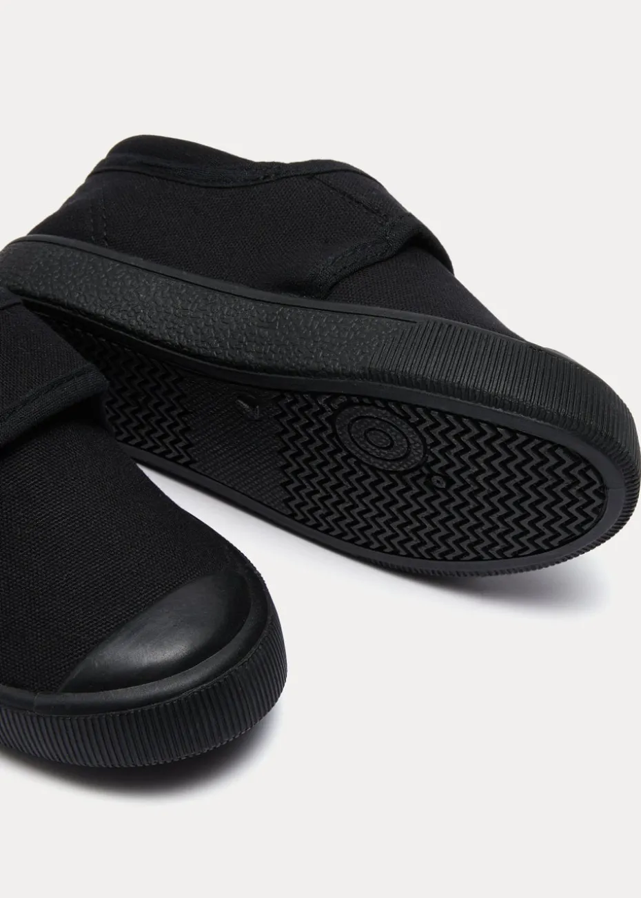 Perfect for PE or everyday wear, these kids black plimsolls have a velcro strap fastening for easy on-off.