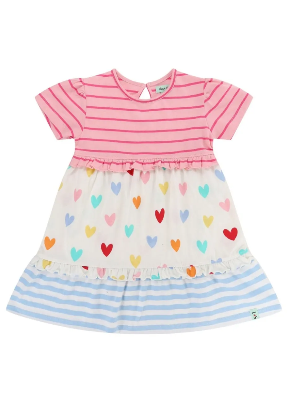 Lilly & Sid Multicoloured Heart & Stripe Print Dress (0-8 Years)