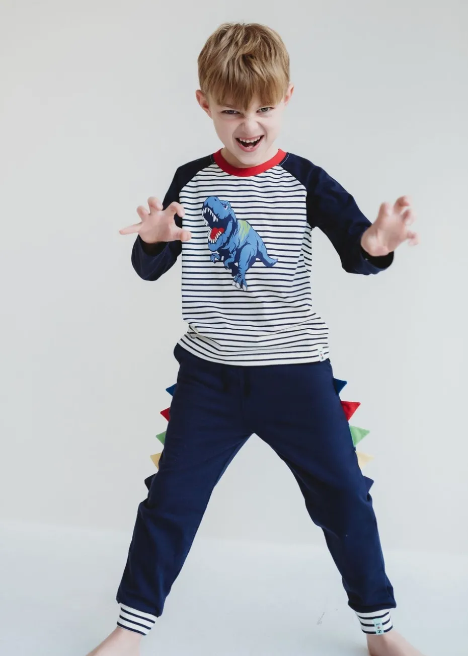 Lilly & Sid Navy Dinosaur Applique Joggers (6 Months- 8 Years)