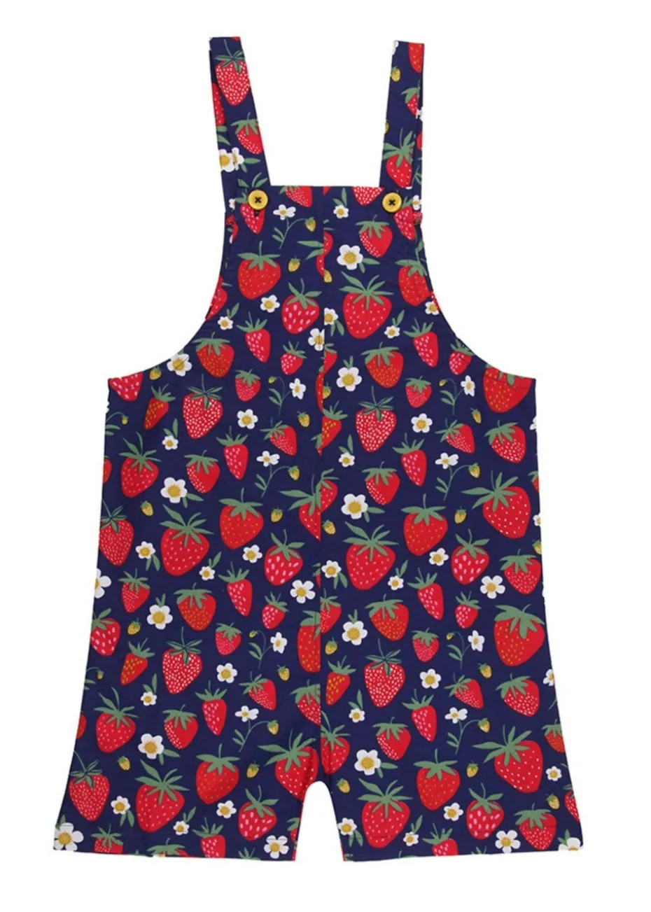 Made from 100% GOTS organic woven fabric, these strawberry dungarees are a great sustainable, ecofriendly and nonseasonal choice for girls.