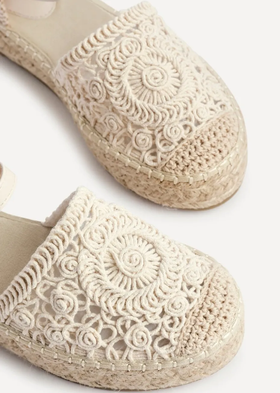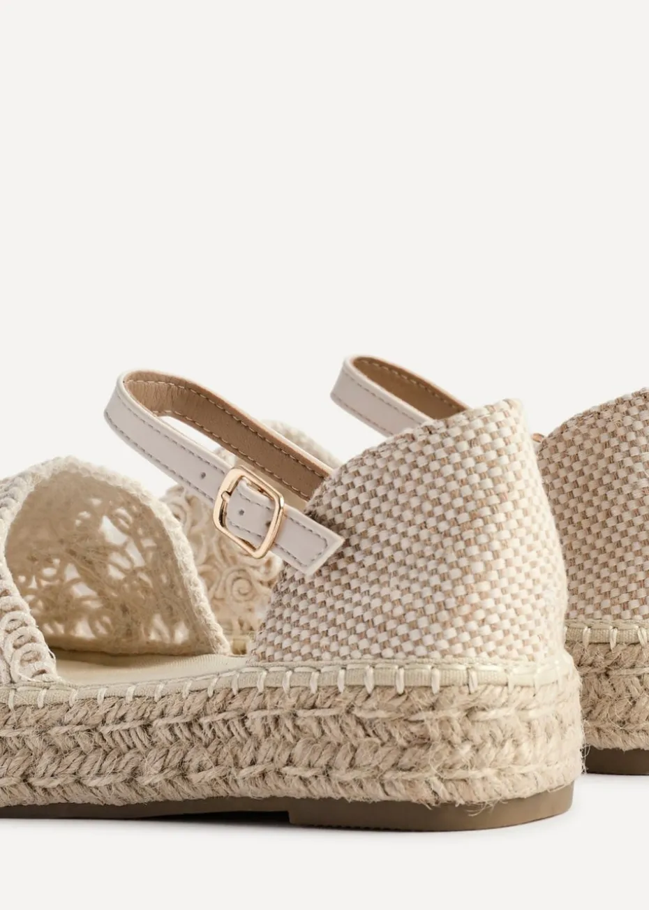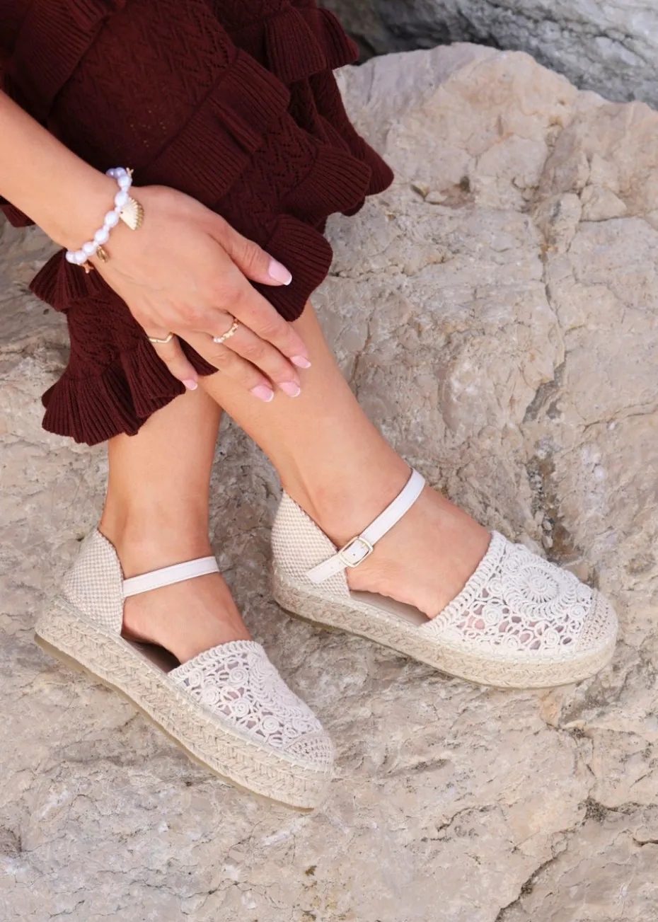 Embrace our exquisite Adelina flatform sandal with a closed toe and intricate woven design. The 3cm flatform is wrapped in high-quality espadrille material, making it the ideal summer shoe.