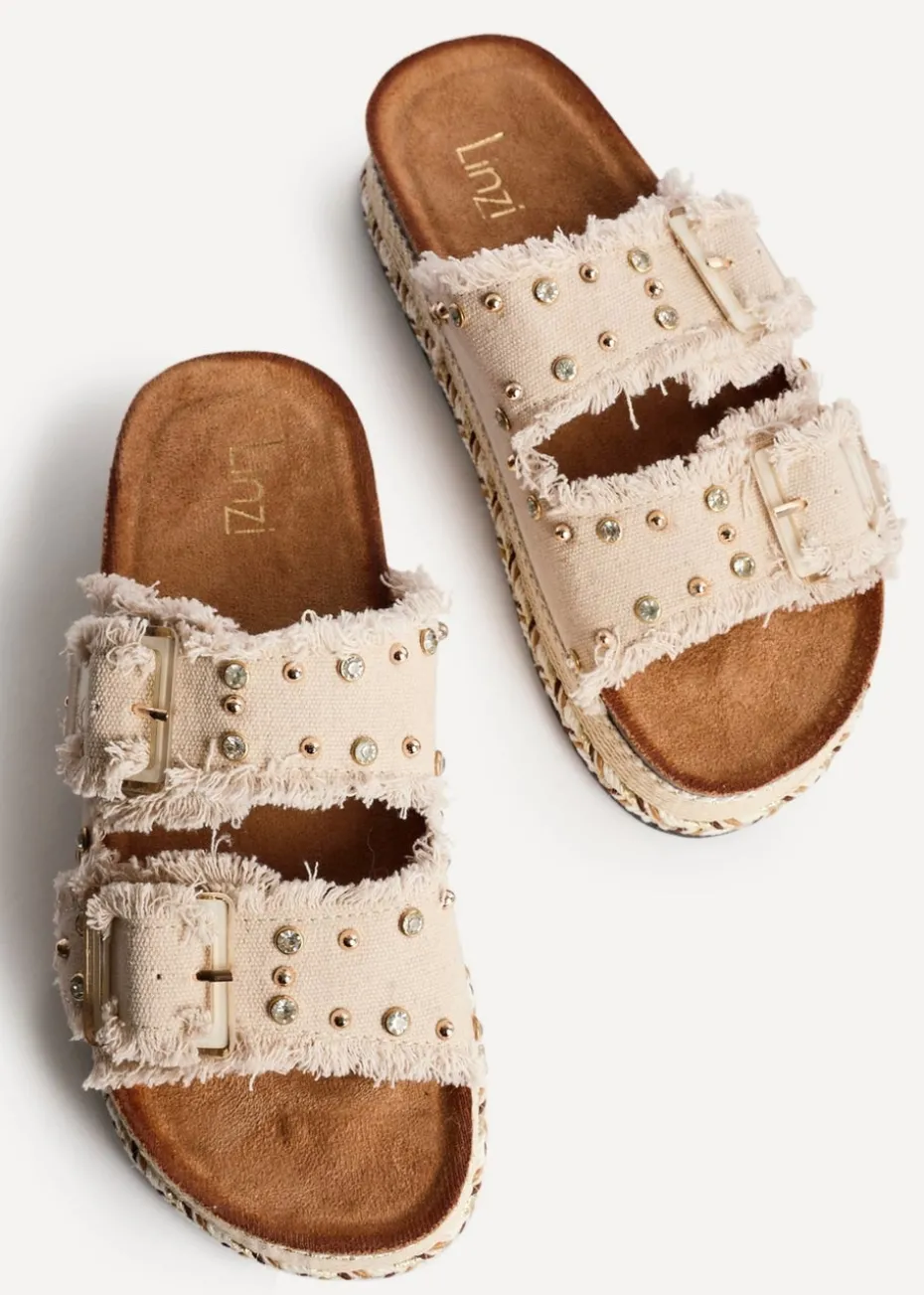 Be the first to review “Linzi Bahama Beige Diamante Studded Double Buckle Flatform Slider Sandal” Cancel reply