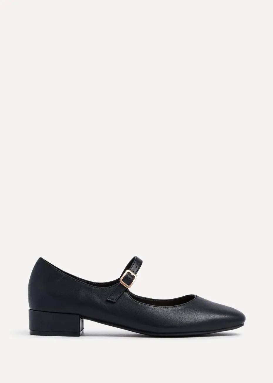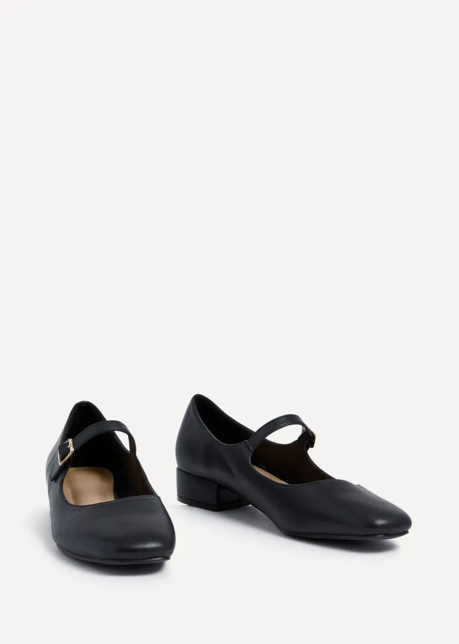 Linzi Carley Black Faux Leather Low Block Court Shoe
