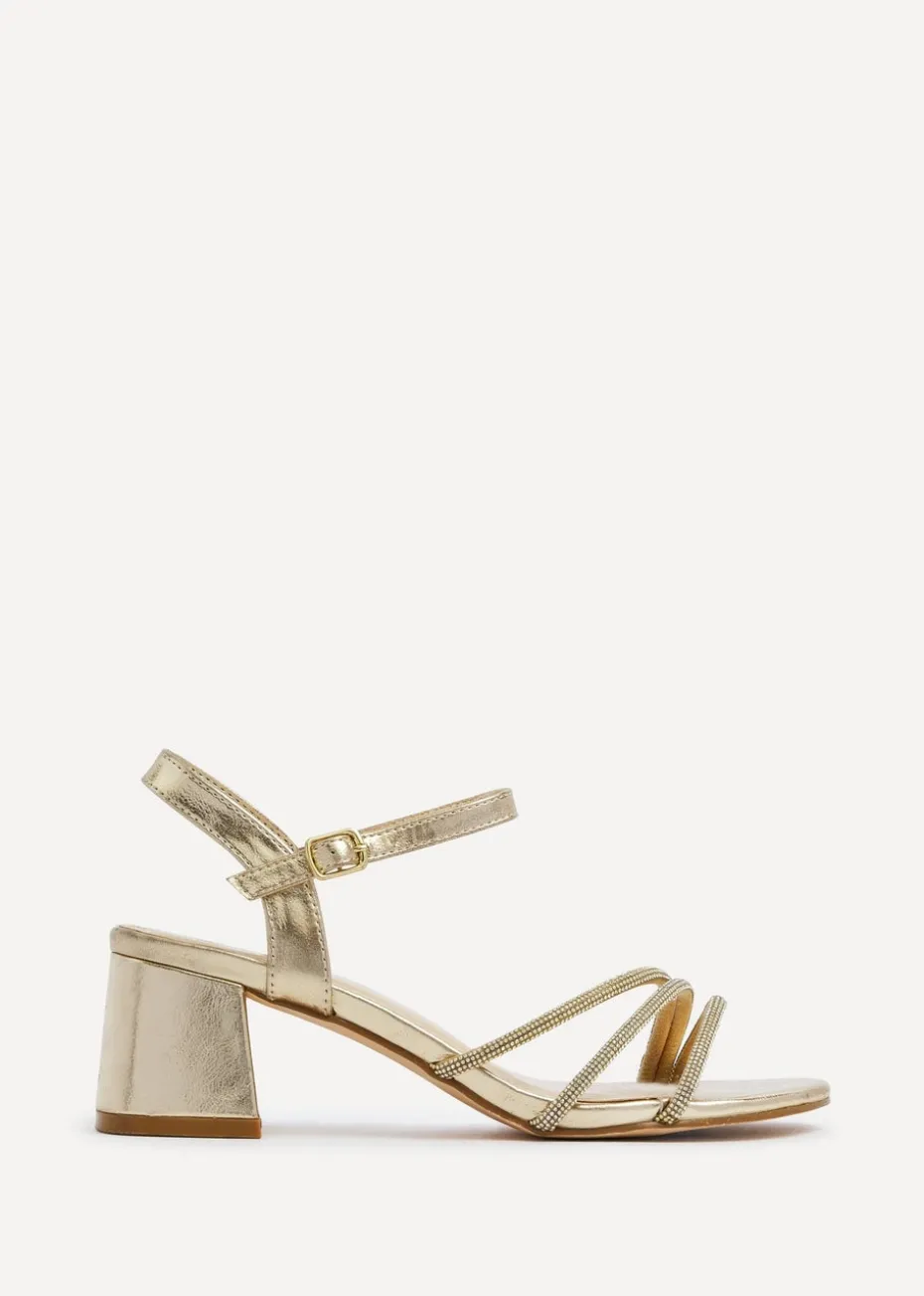 Luxurious faux suede with three front straps covered in sparkling diamantes, these open-toe & back block heeled sandals boast a 5.5cm/ 2.16 inch heel for a sultry, show-stopping look..