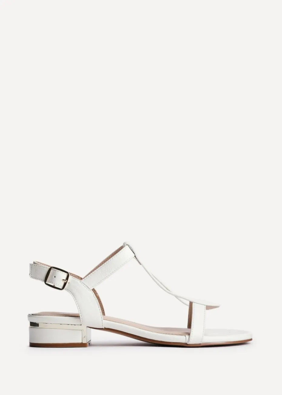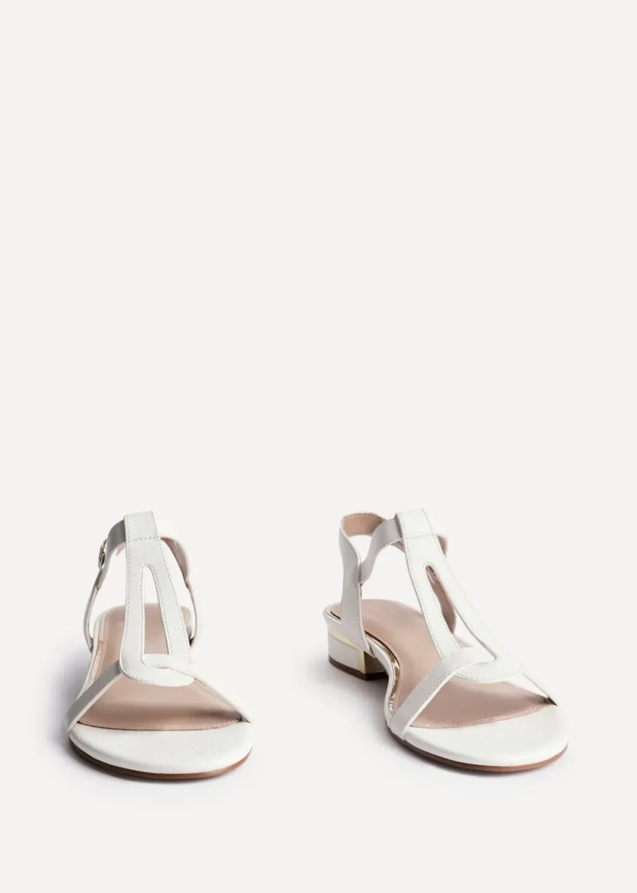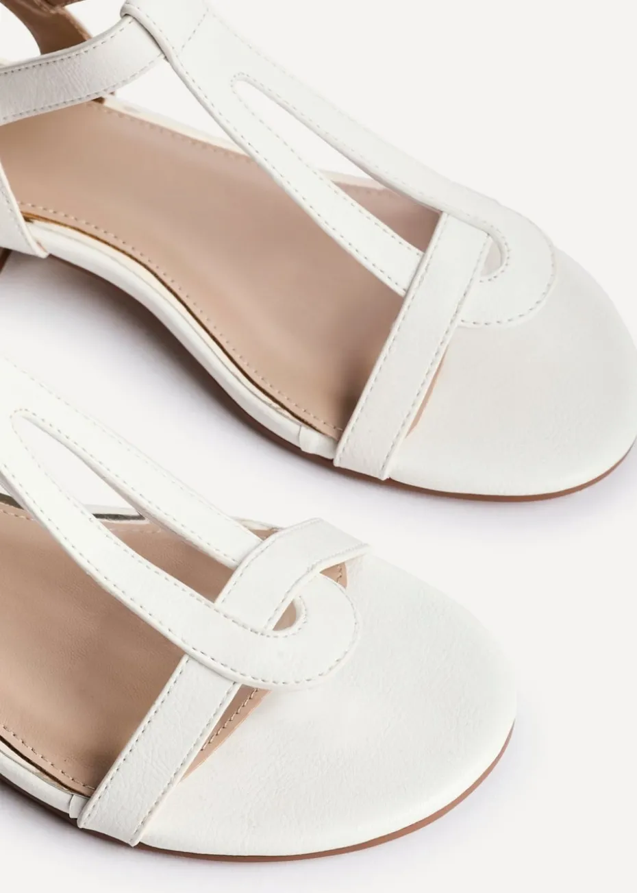 Linzi Deluxe Wide Fit White Faux Leather T Bar Looped Low Heeled Sandal