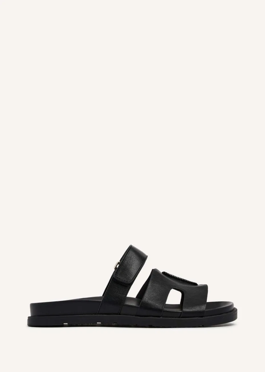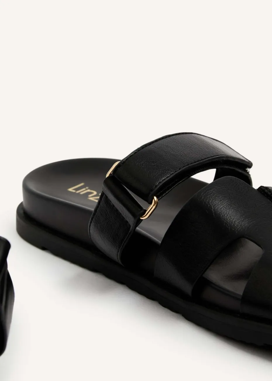 Be the first to review “Linzi Emmy Black Faux Leather Footbed Linked Design Sandal” Cancel reply