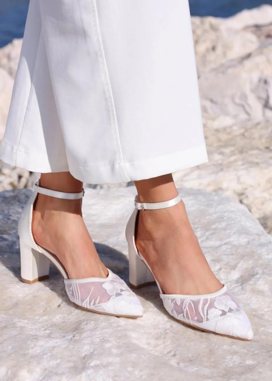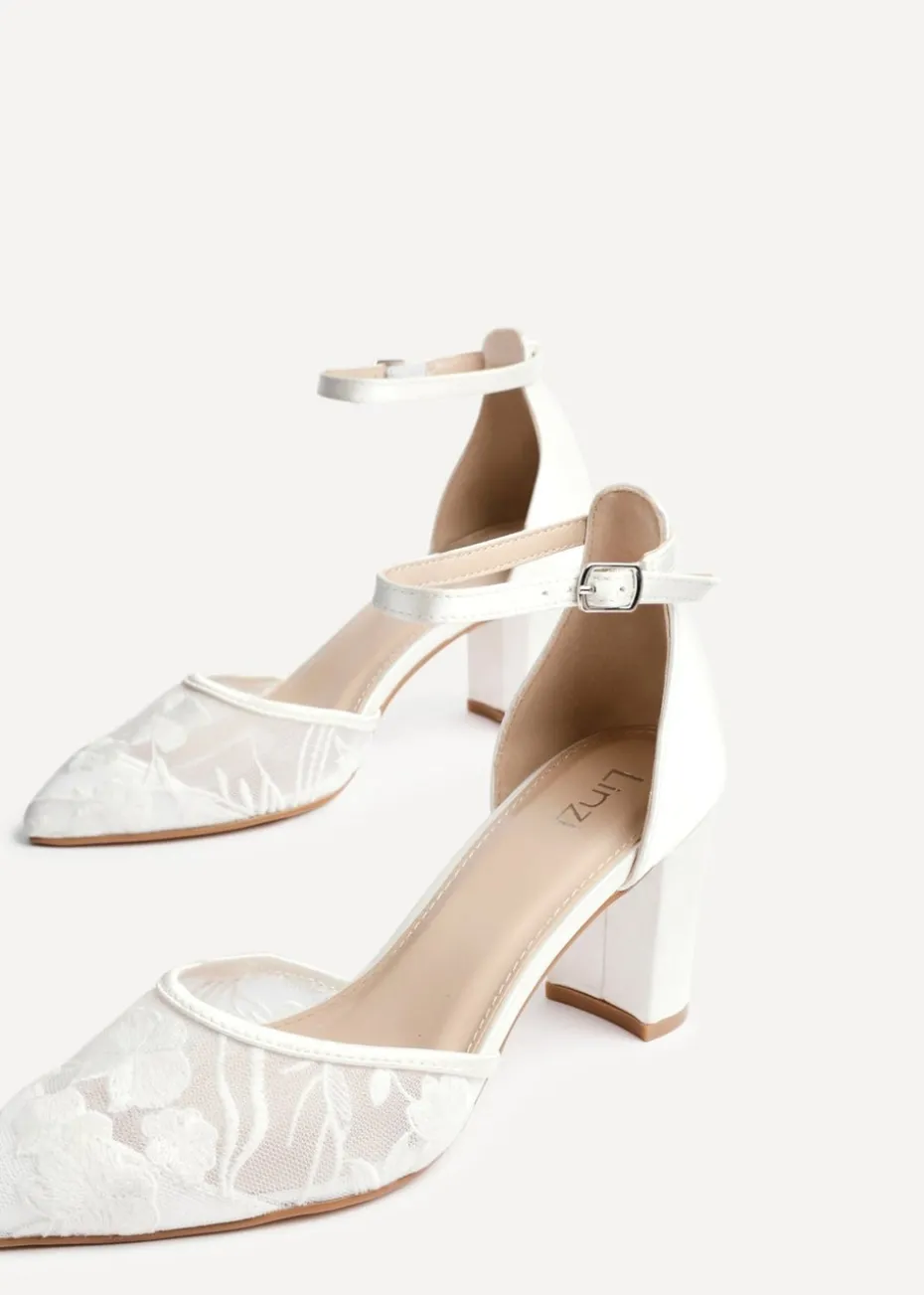 Be the first to review “Linzi Essence Ivory Satin Floral Lace Block Court Heel” Cancel reply