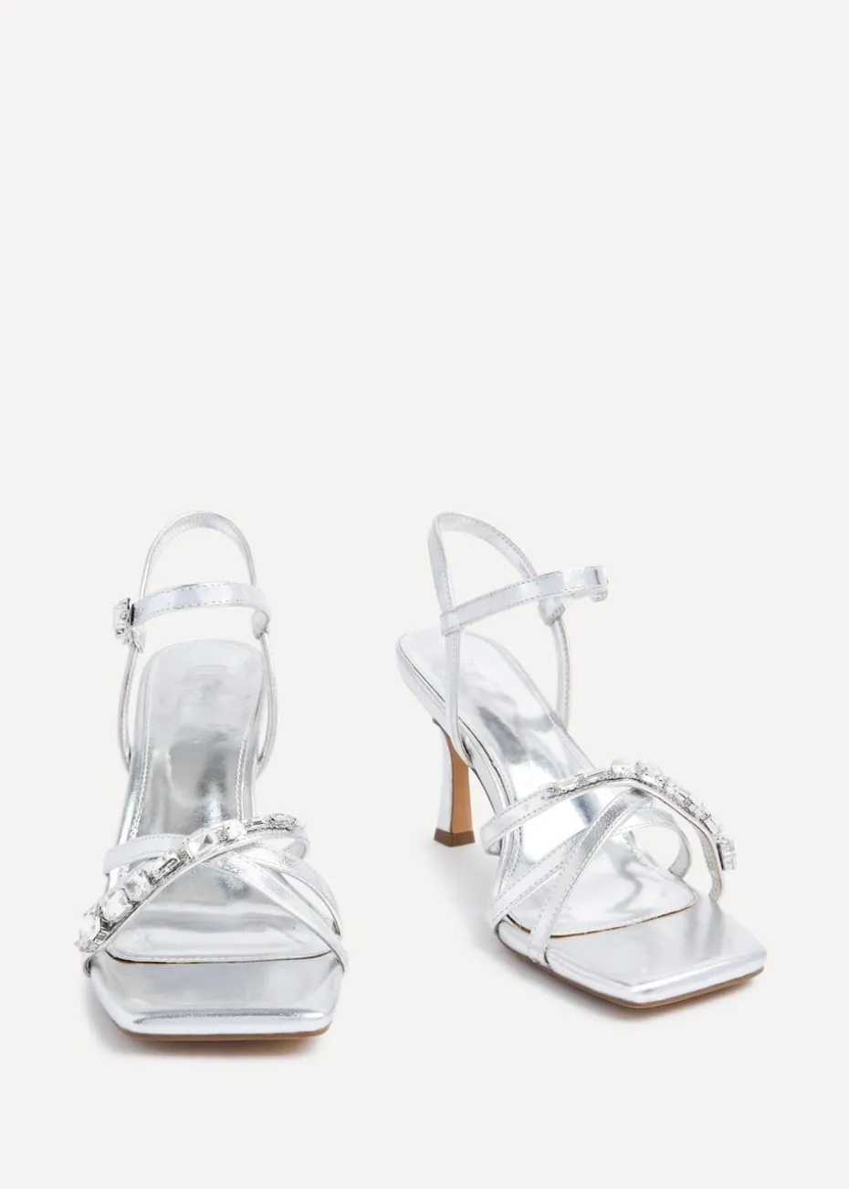 Be the first to review “Linzi Eva Silver Faux Leather Diamante Embellished Heels” Cancel reply