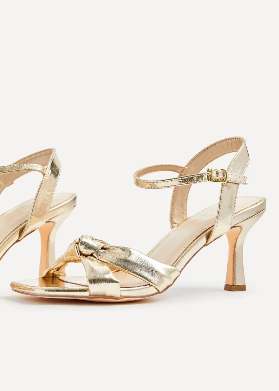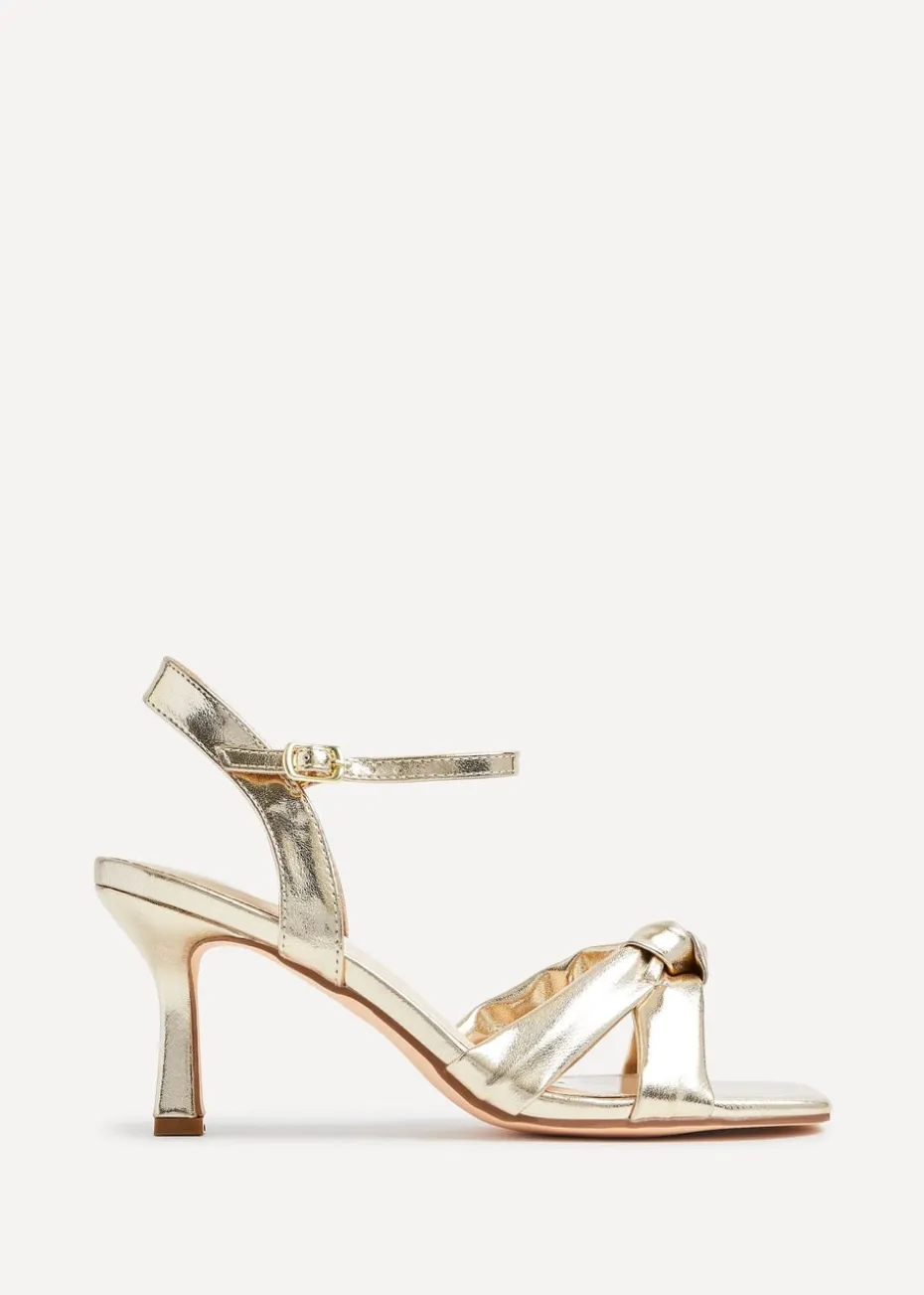 Linzi Favour Wide Fit Gold Faux Leather Knotted Heeled Sandal