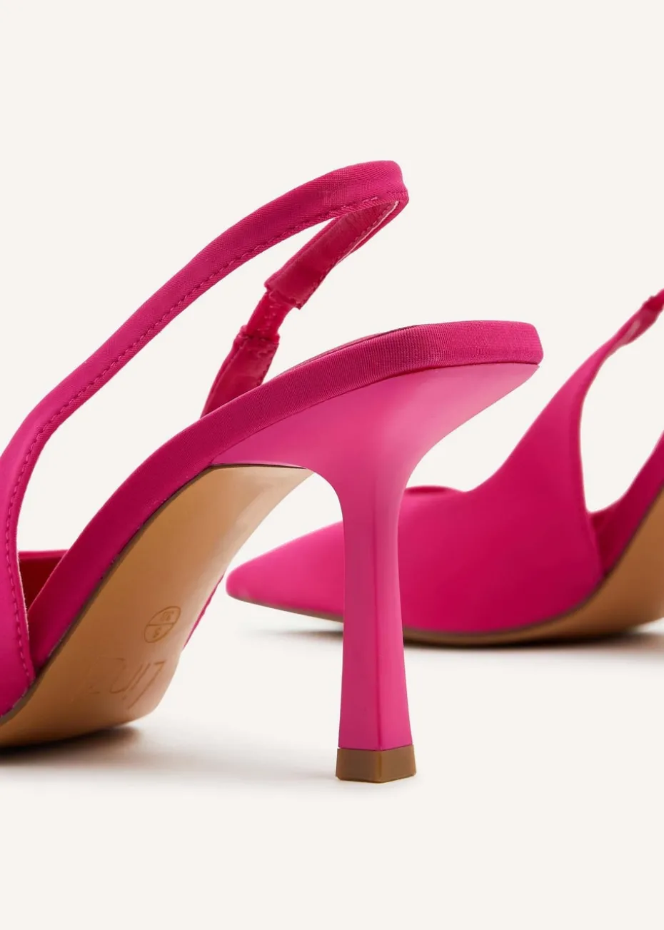 Be the first to review “Linzi Fling Hot Pink Lycra Sling Back Court Heel” Cancel reply