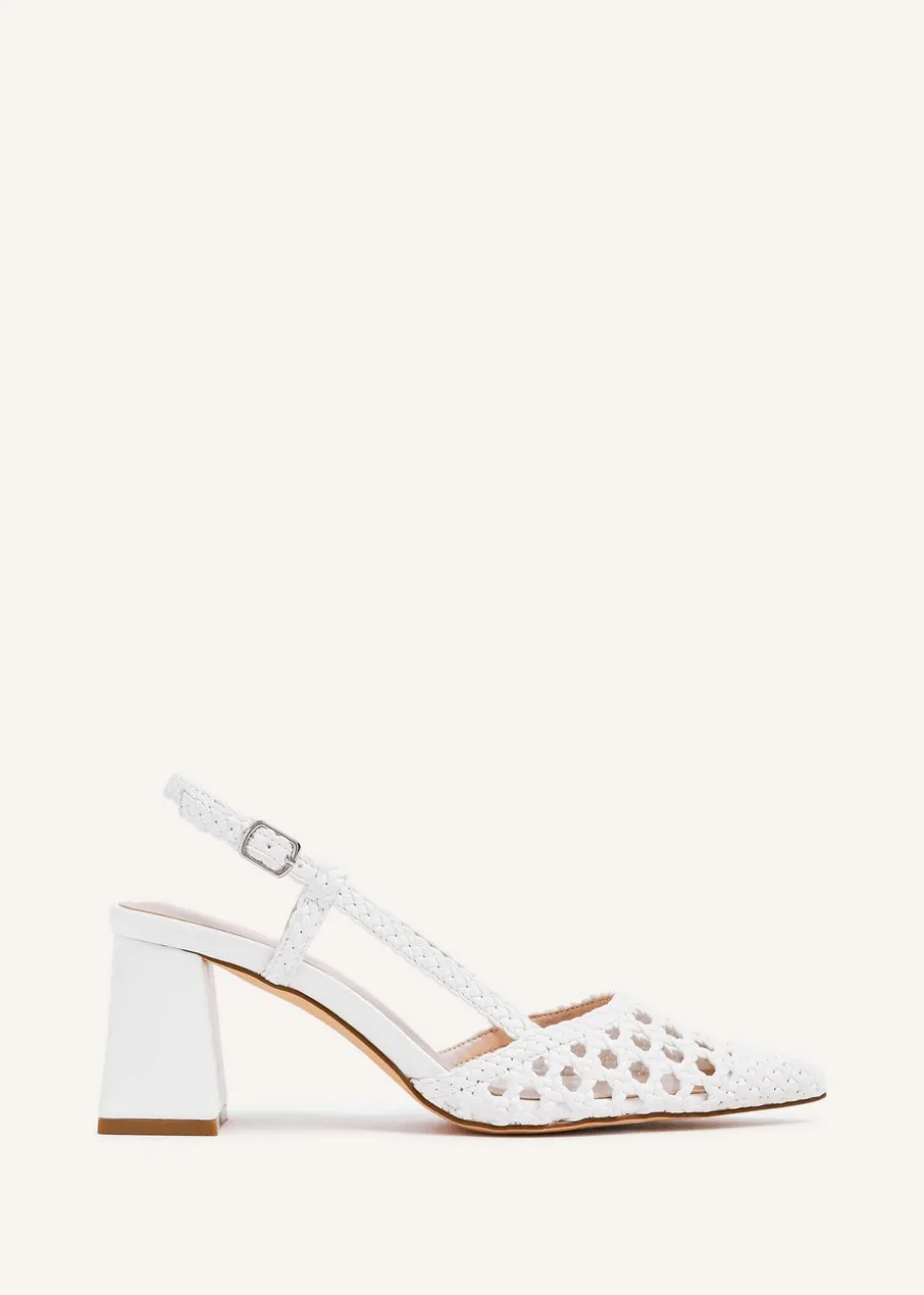 Be the first to review “Linzi Florence White Faux Leather Woven Block Court Heels” Cancel reply