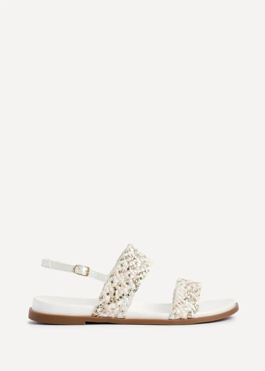 Experience our chic Galia flat sandals. Adorned with two intricately handwoven straps, connected to a slingback strap for an elegant and sophisticated look. The moulded footbed is expertly crafted for ultimate comfort.
