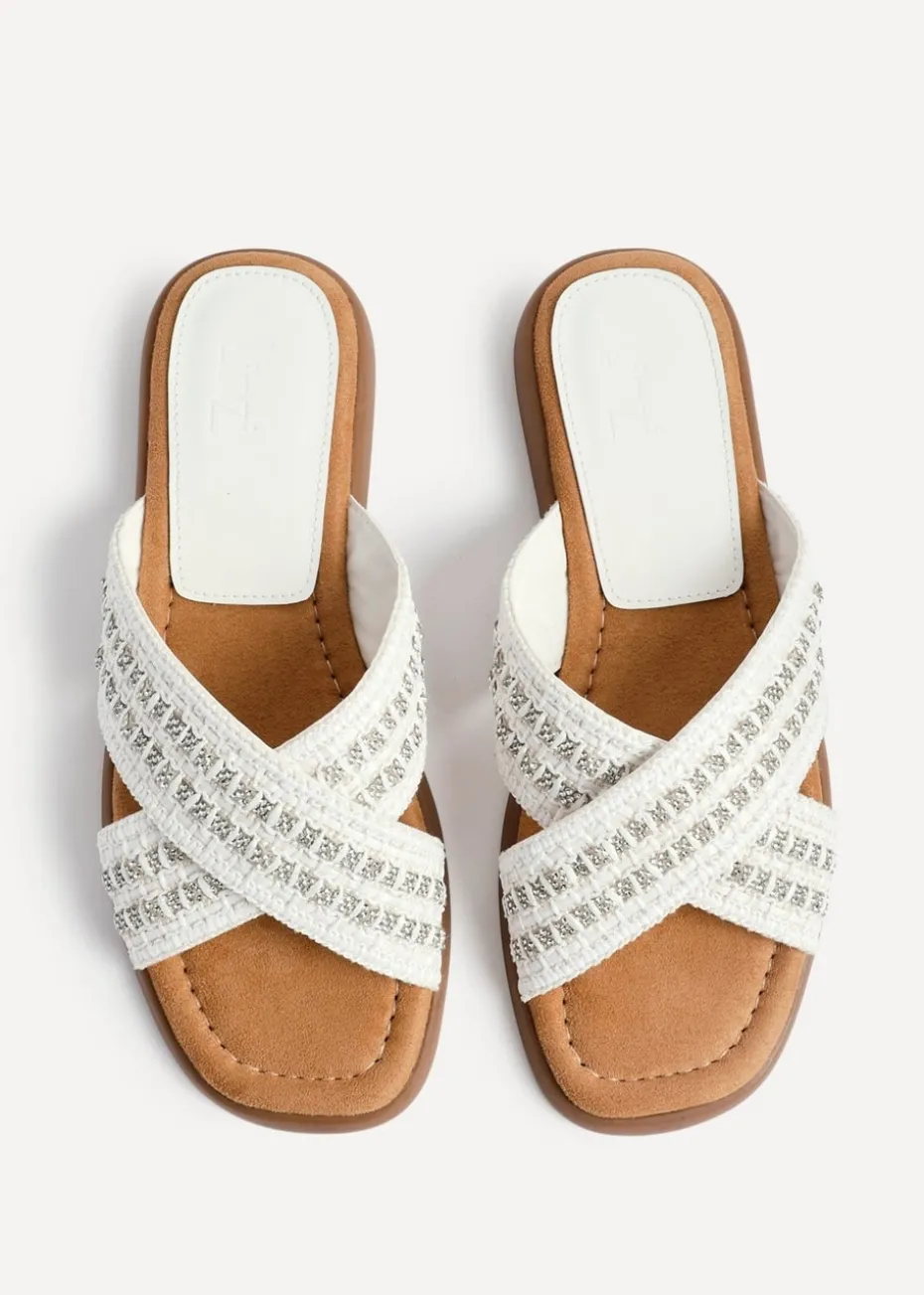Be the first to review “Linzi Genie White Embellished Raffia Flat Slider Sandal” Cancel reply