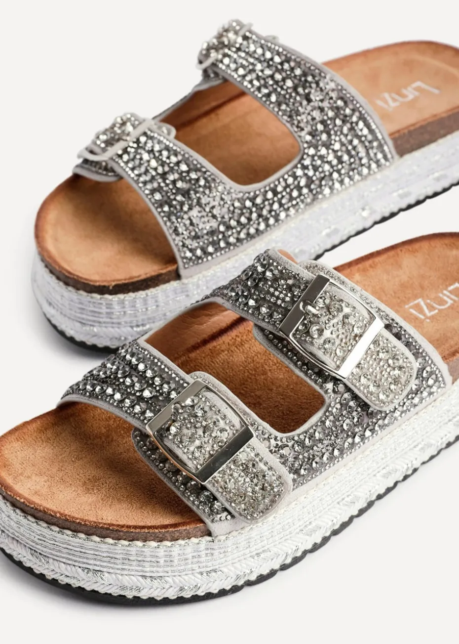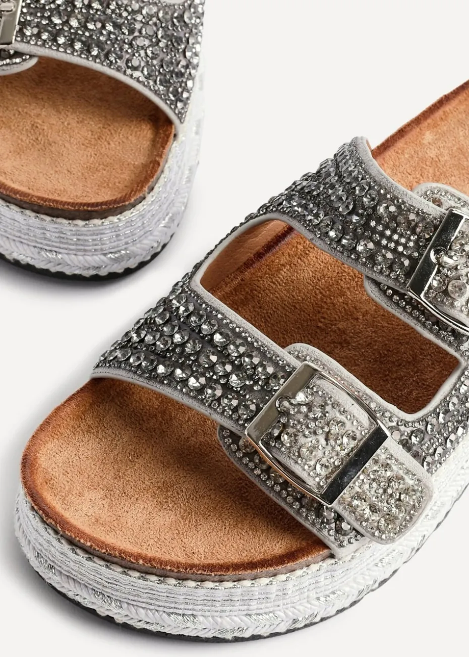 Be the first to review “Linzi Glitzy Silver Diamante Double Buckle Flatform Slider Sandal” Cancel reply