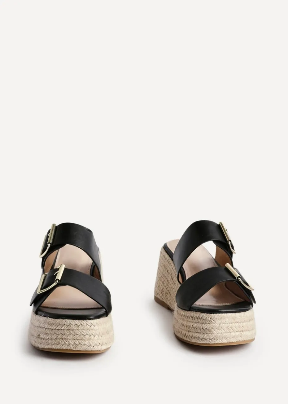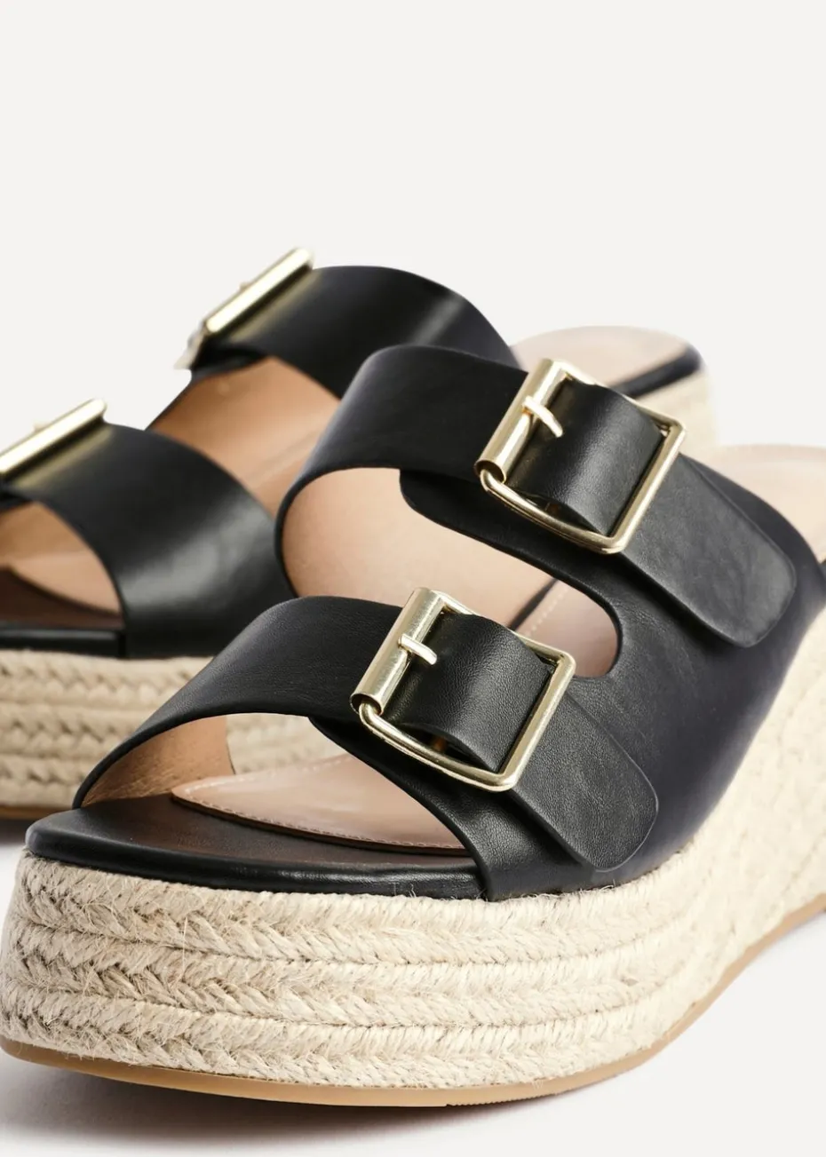 Be the first to review “Linzi Impact Black Faux Leather Double Buckle Espadrille Wedge Mule” Cancel reply