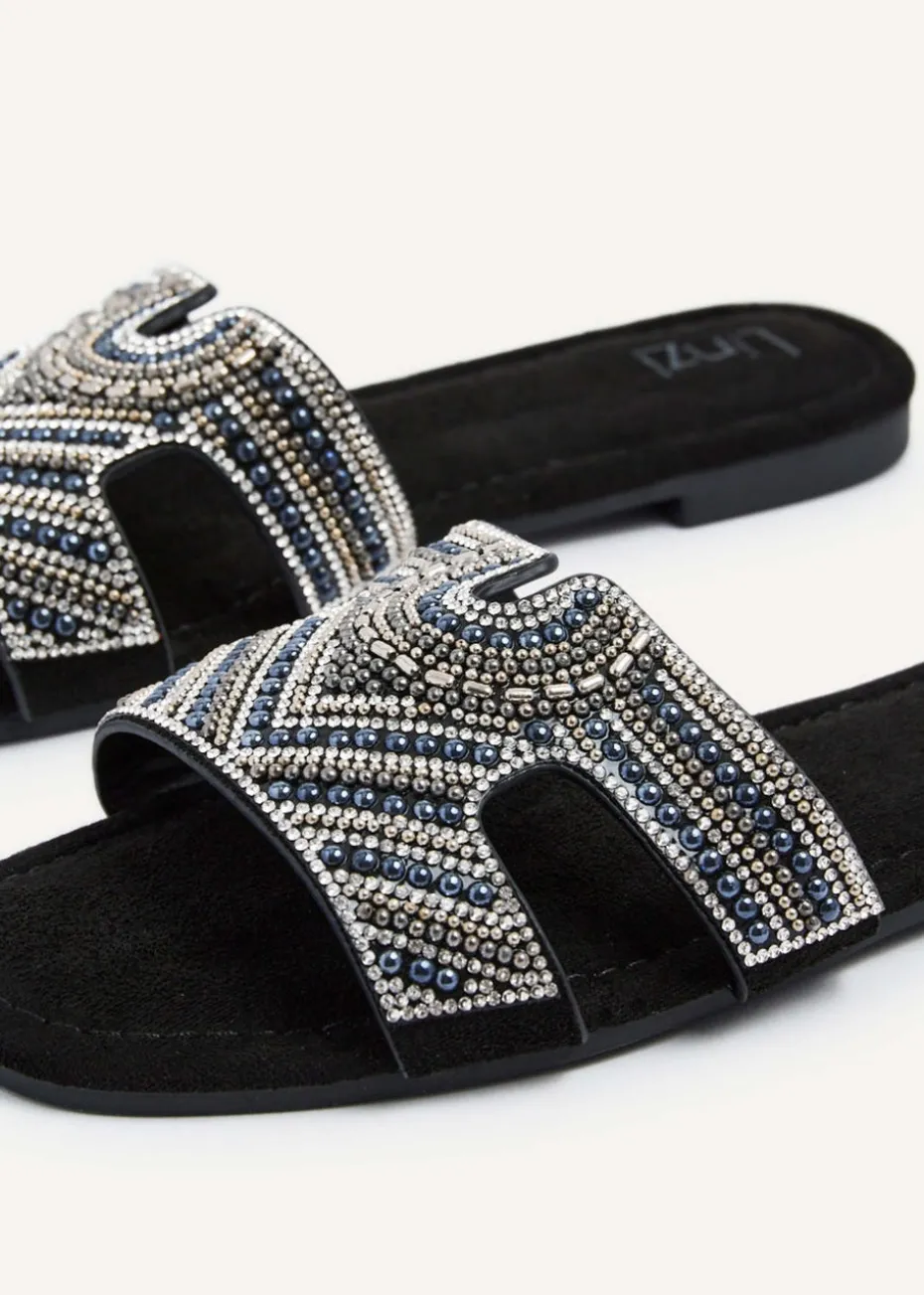 Be the first to review “Linzi Indira Black Suede Aztec Design Embellished Slider Sandal” Cancel reply