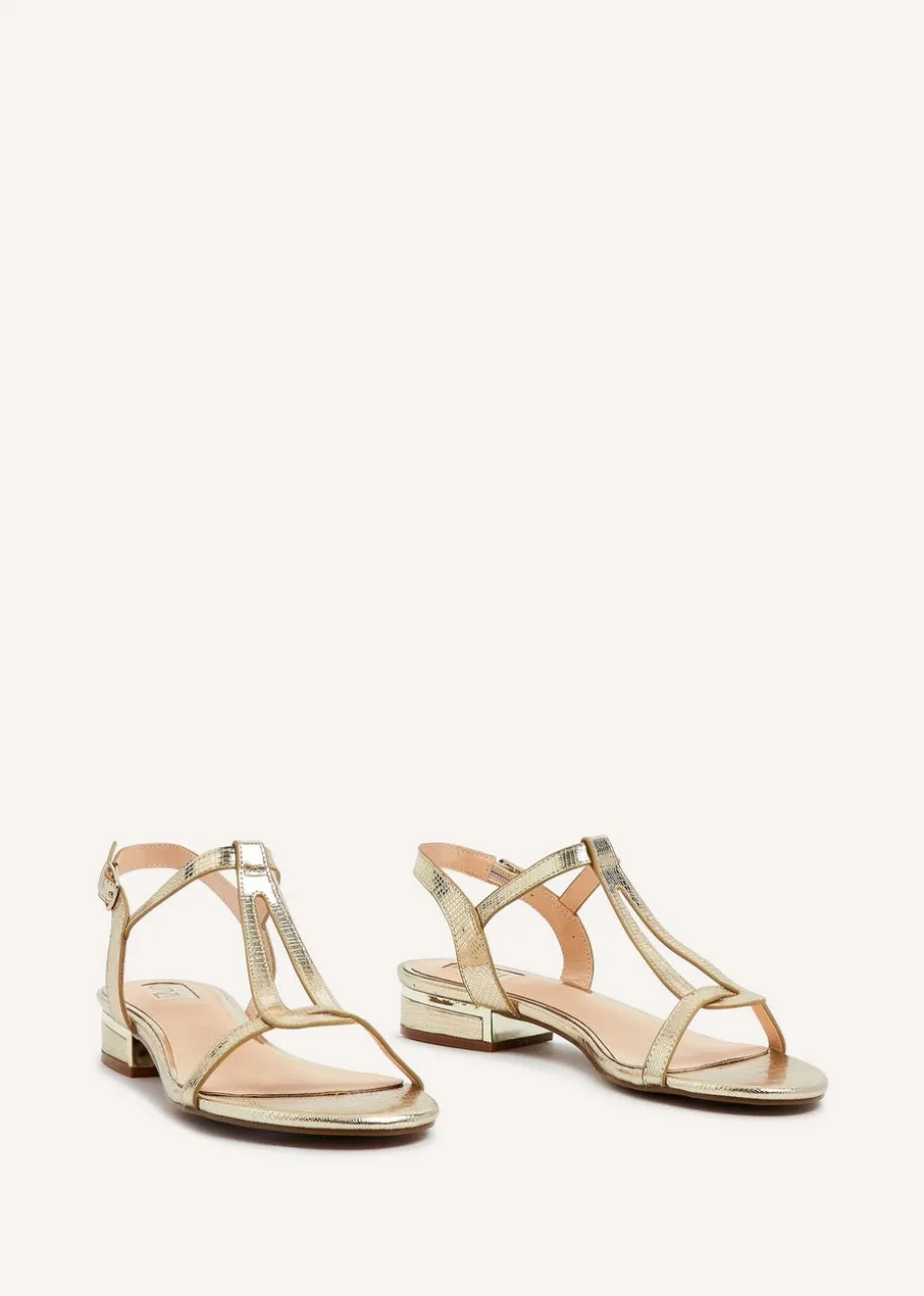 Be the first to review “Linzi Lavish Gold Lizard T-Bar Looped Low Block Sandal” Cancel reply