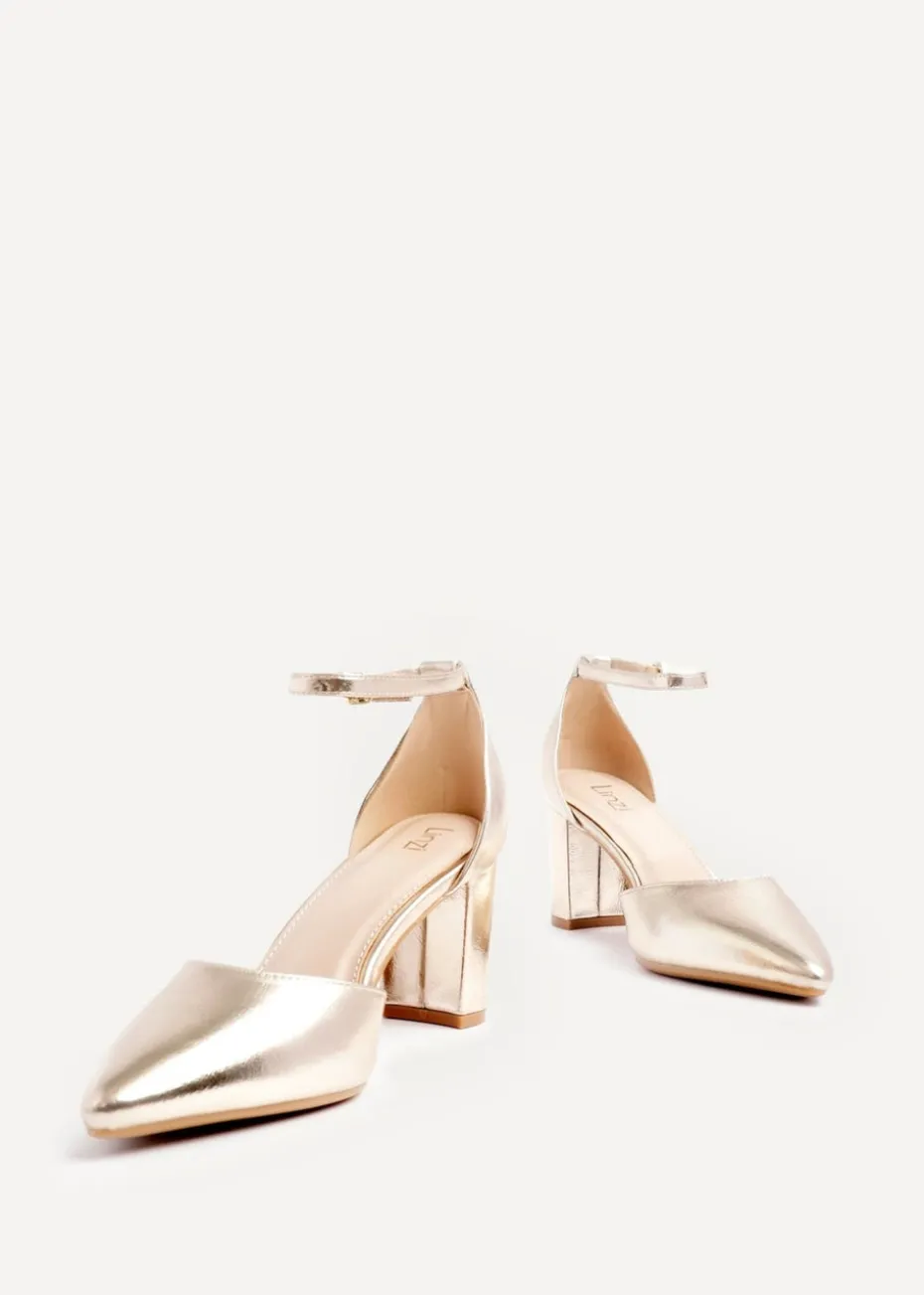 Be the first to review “Linzi Leona Gold Faux Leather Closed Back Block Heeled Court Shoe” Cancel reply