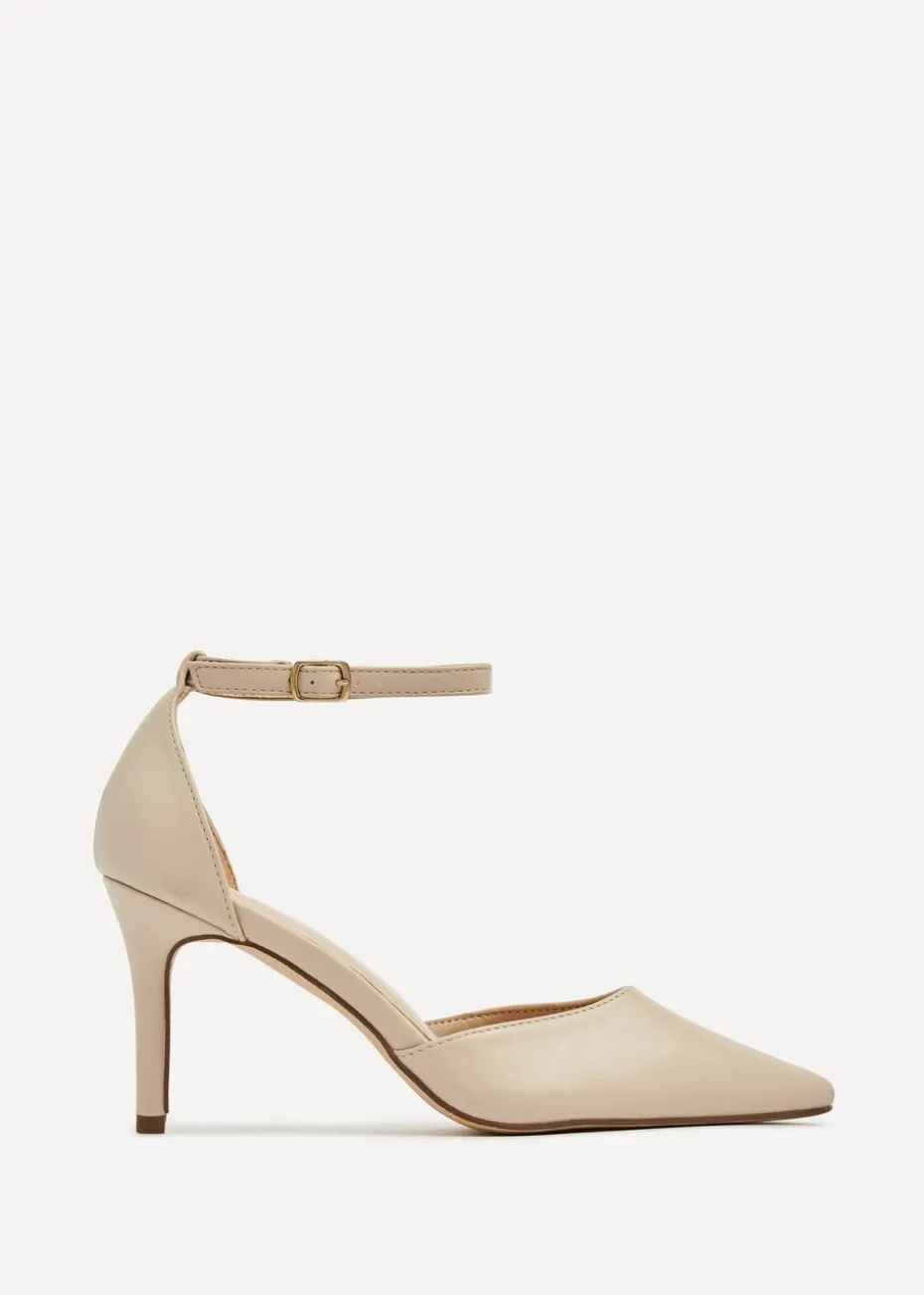 Soft Faux Leather Court Heel Style Ankle Strap Heel Height: 8.5cm / 3.34 inches.