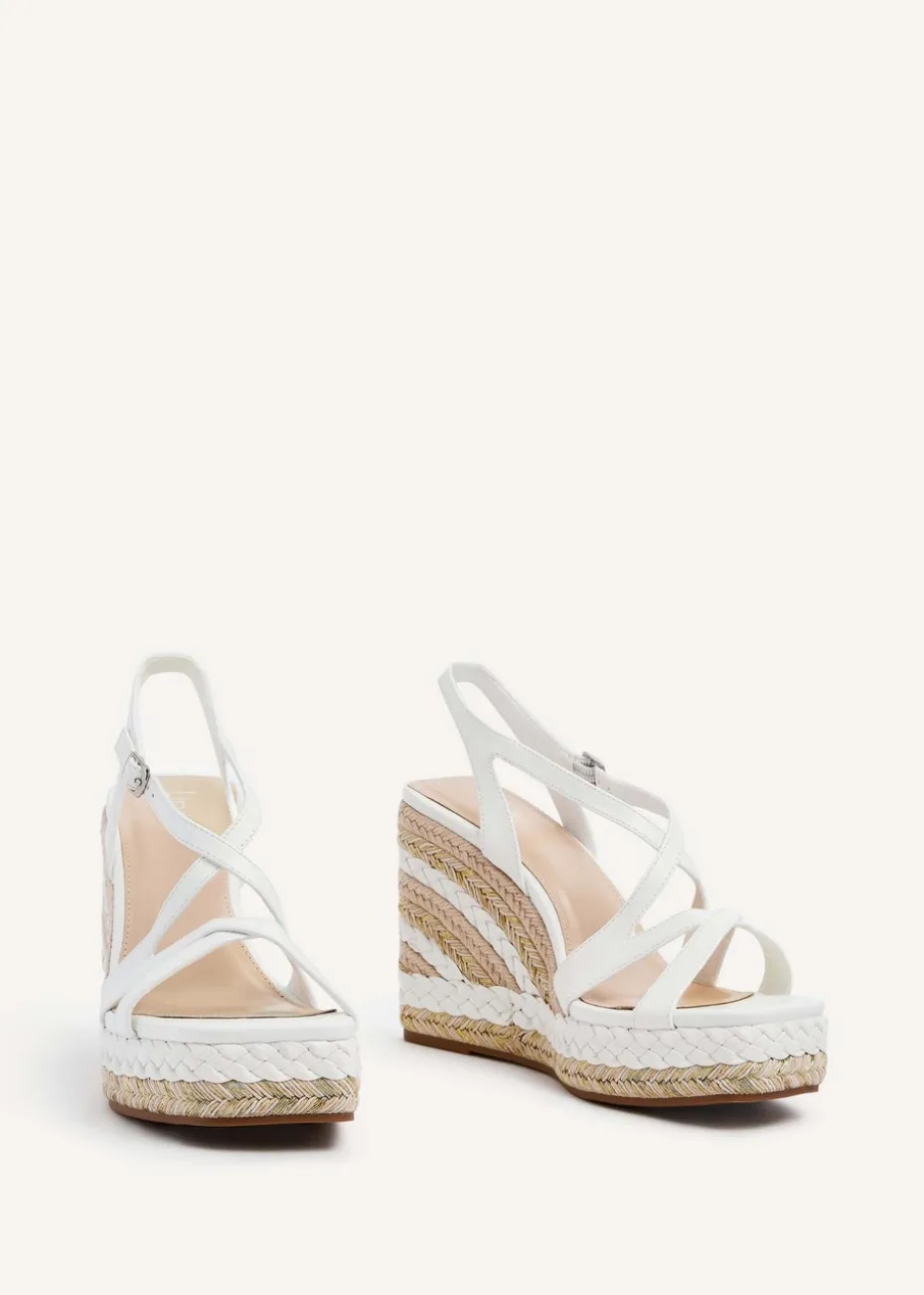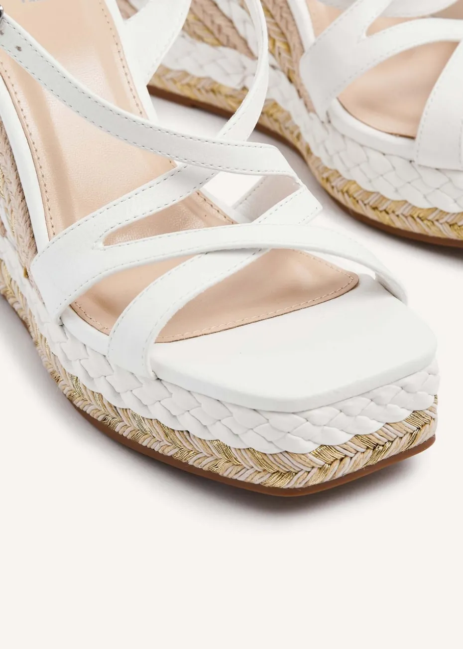 Be the first to review “Linzi Marbella White Faux Leather Crossover Metallic Rope Wedge” Cancel reply