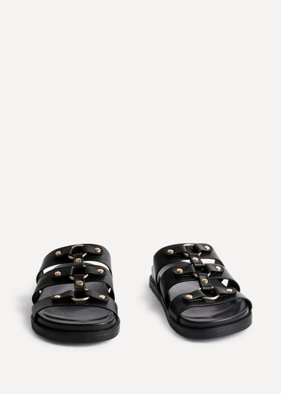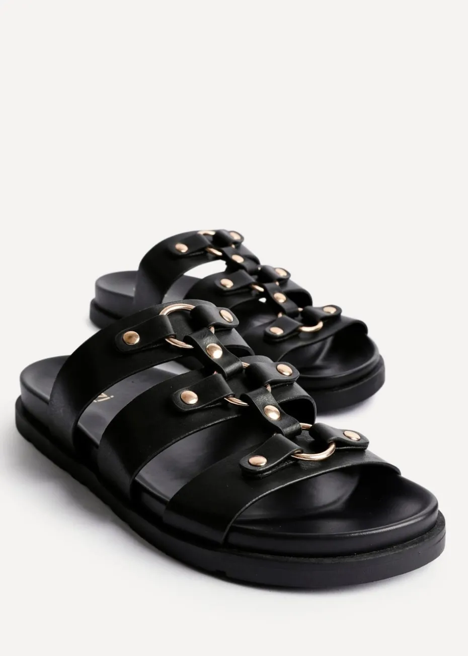 Transform your summer style with our Marcia gladiator sandals. These sandals are made from premium faux leather, featuring multiple horizontal straps adorned with stud embellishments. Crafted with a plush, moulded footbed for comfort.