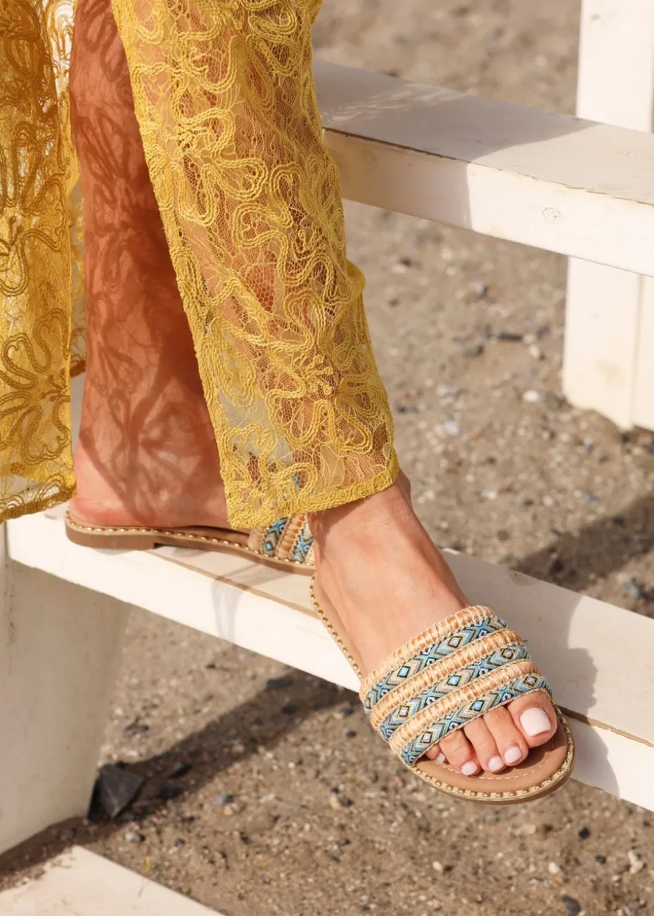 Be the first to review “Linzi Mariana Blue Bohemian Inspired Flat Slider Sandal” Cancel reply