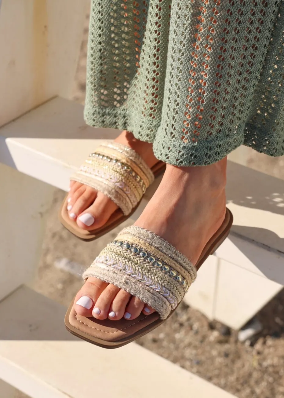 Be the first to review “Linzi Mariel Natural Woven Embellished Flat Sandals” Cancel reply