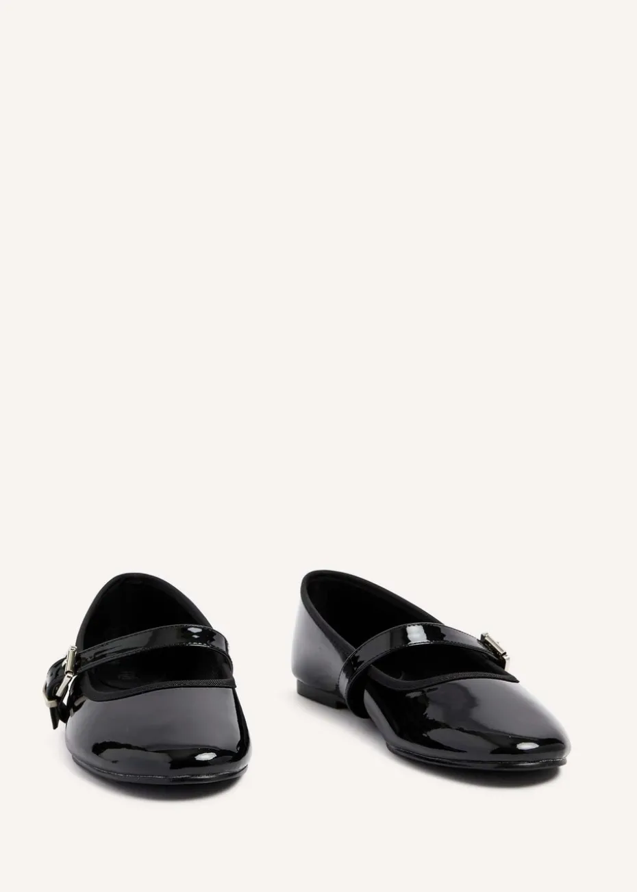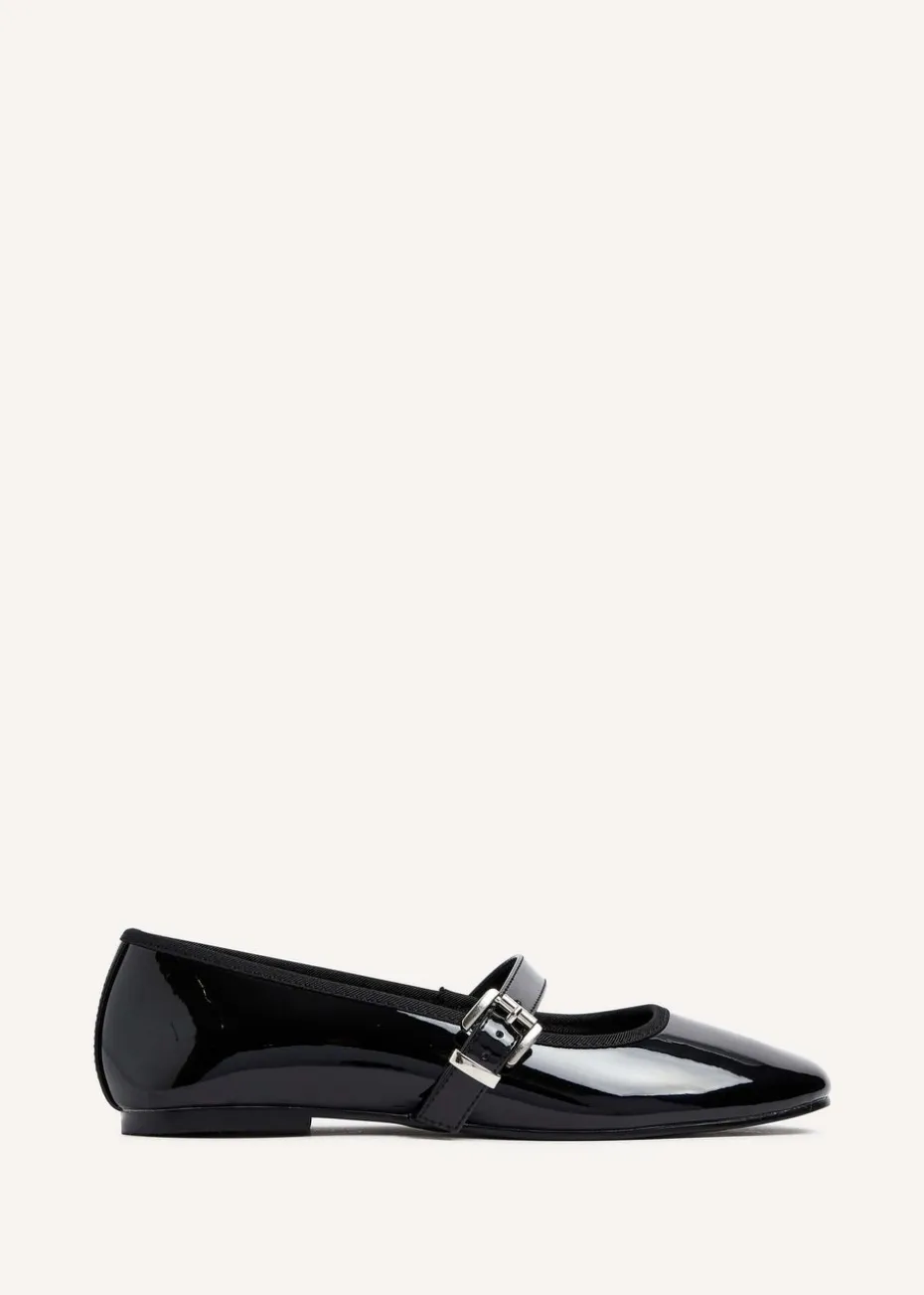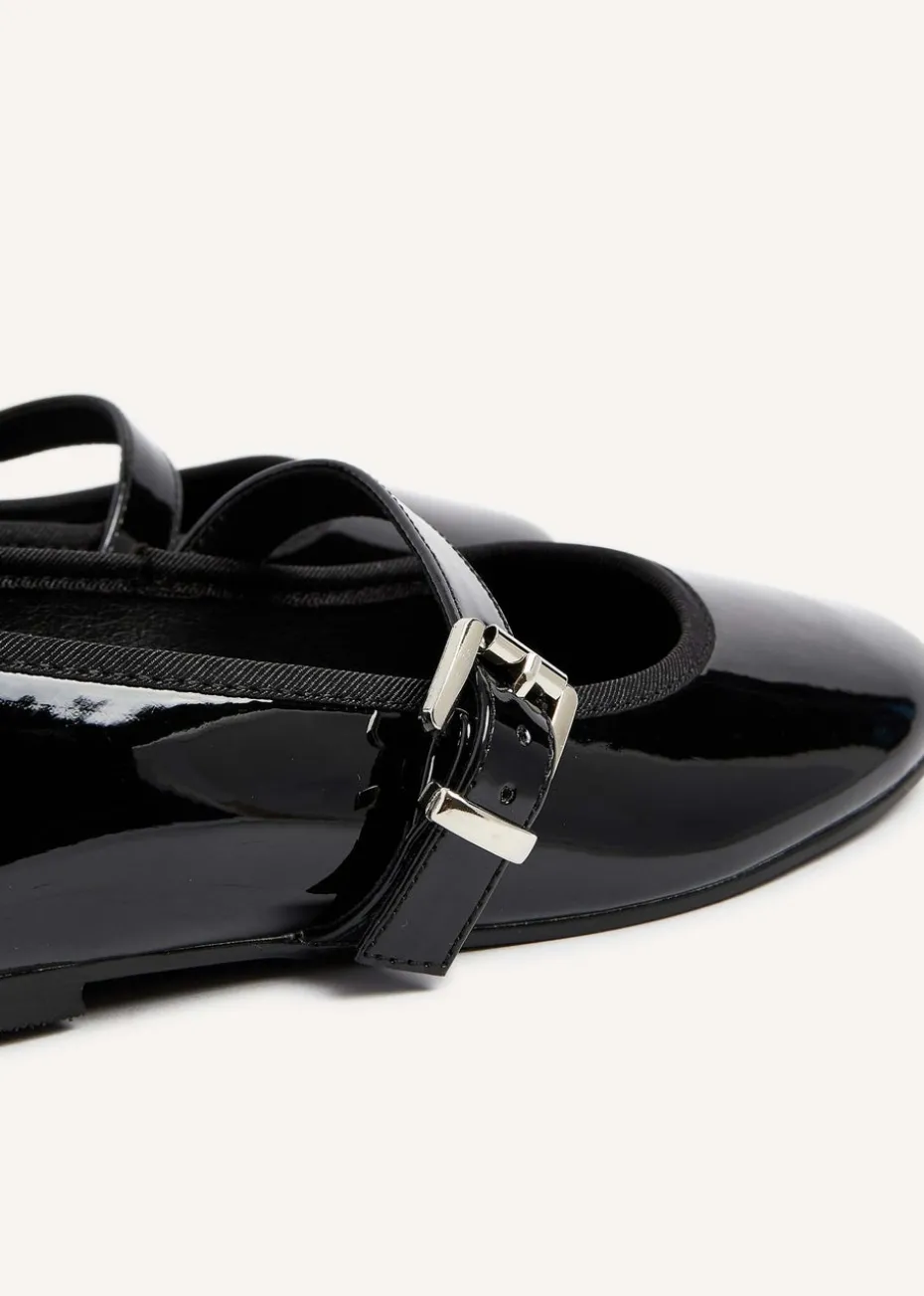 Linzi Odette Black Faux Patent Mary Jane Pumps