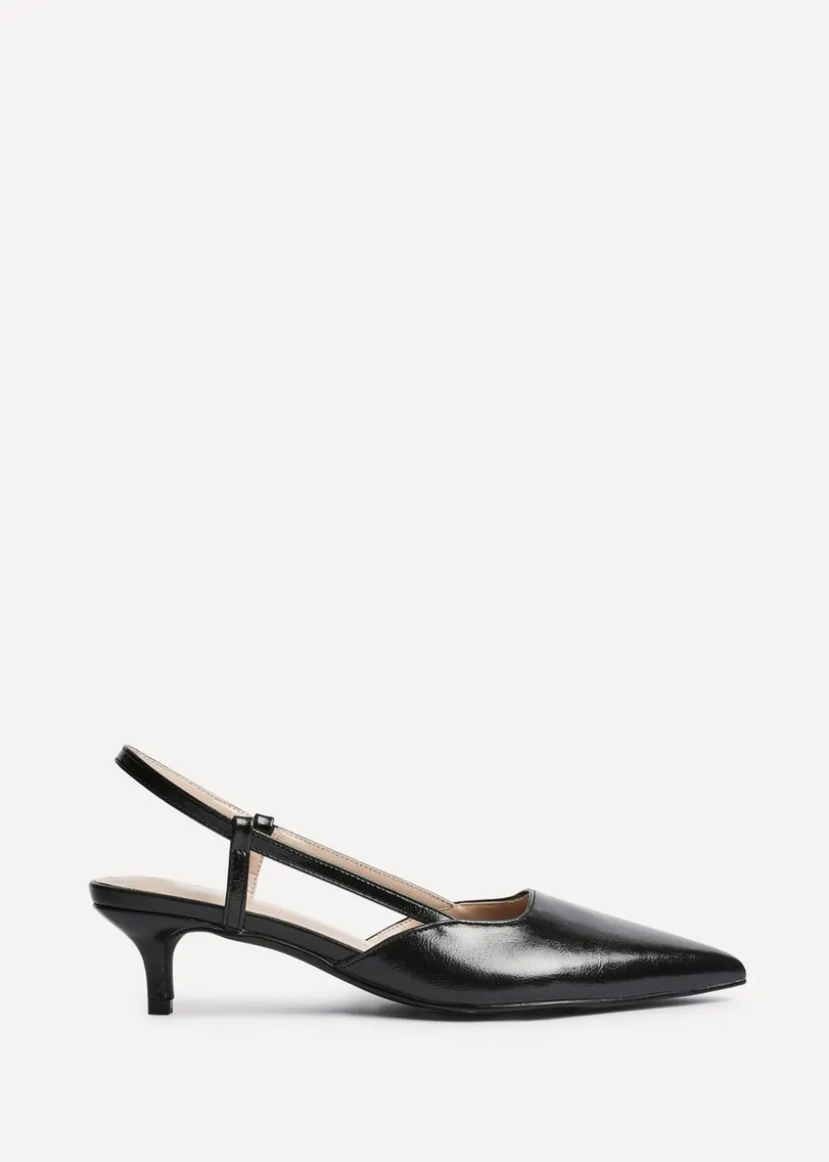 Be the first to review “Linzi Refined Black Faux Leather Slingback Kitten Court Heels” Cancel reply