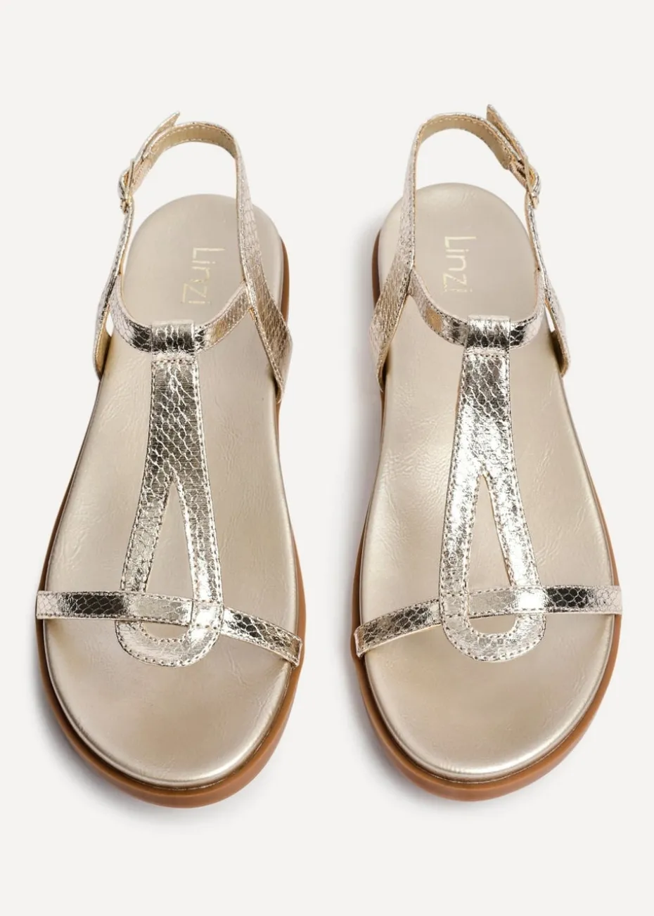 Be the first to review “Linzi Saylor Gold Faux Leather Textured T Bar Sandals” Cancel reply