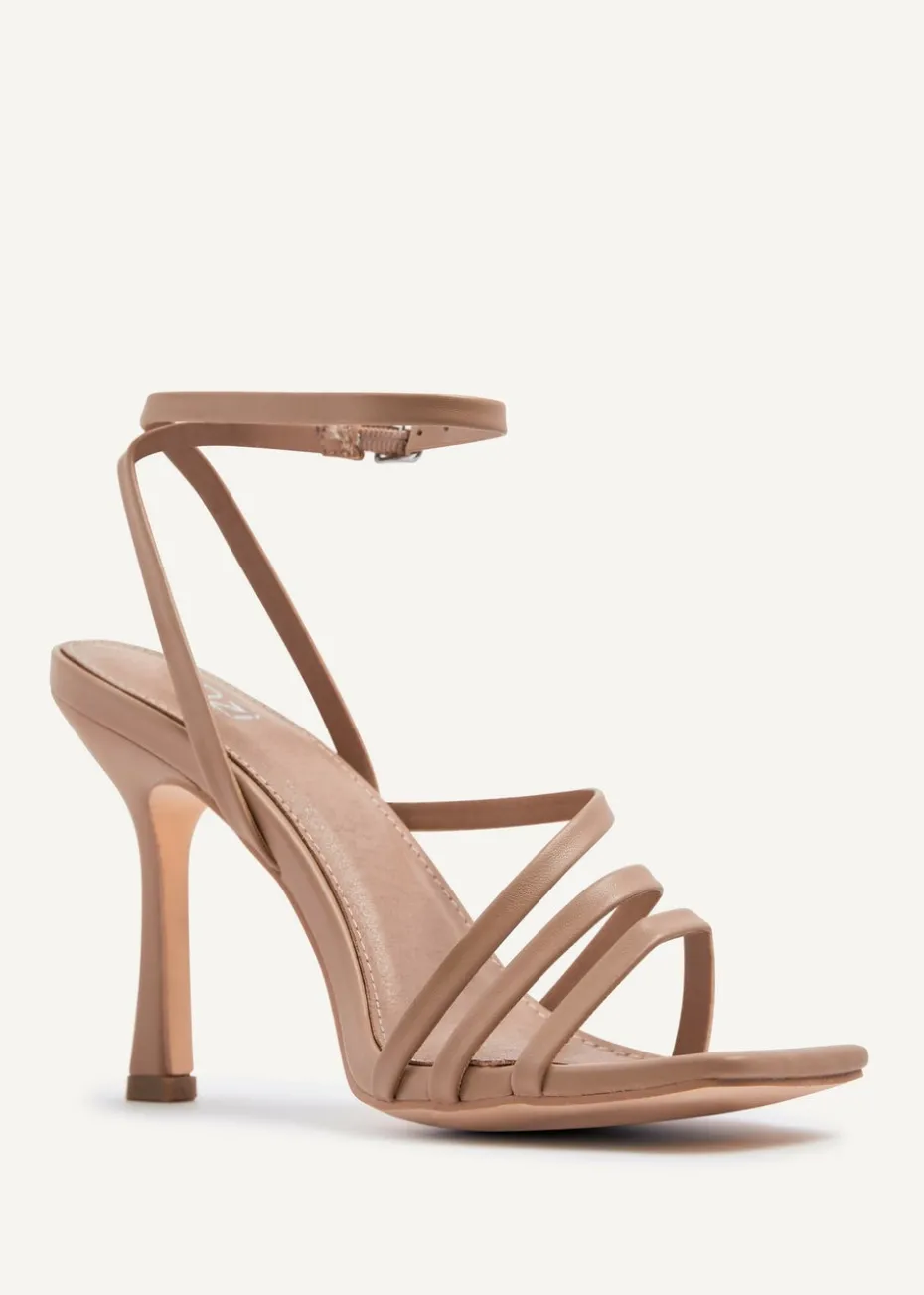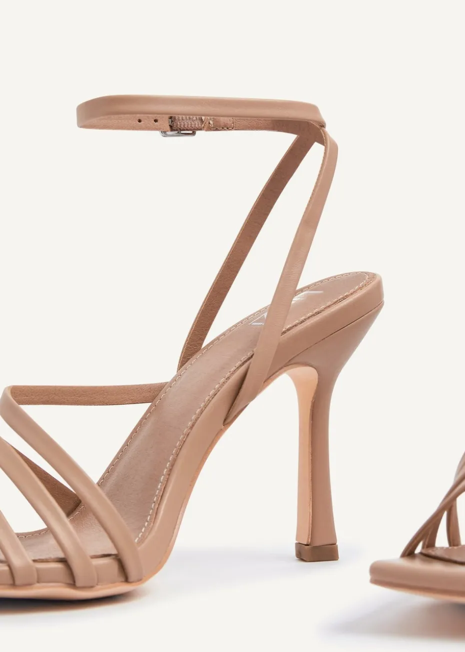 Meet our Scarlett strappy heeled sandal. Designed with comfort and style in mind, these sandals have gorgeous straps that cross over your foot and wrap around your ankle for a secure fit. The elegant 10cm heel adds a bit of sophistication, making them perfect for fancy events or a night out..