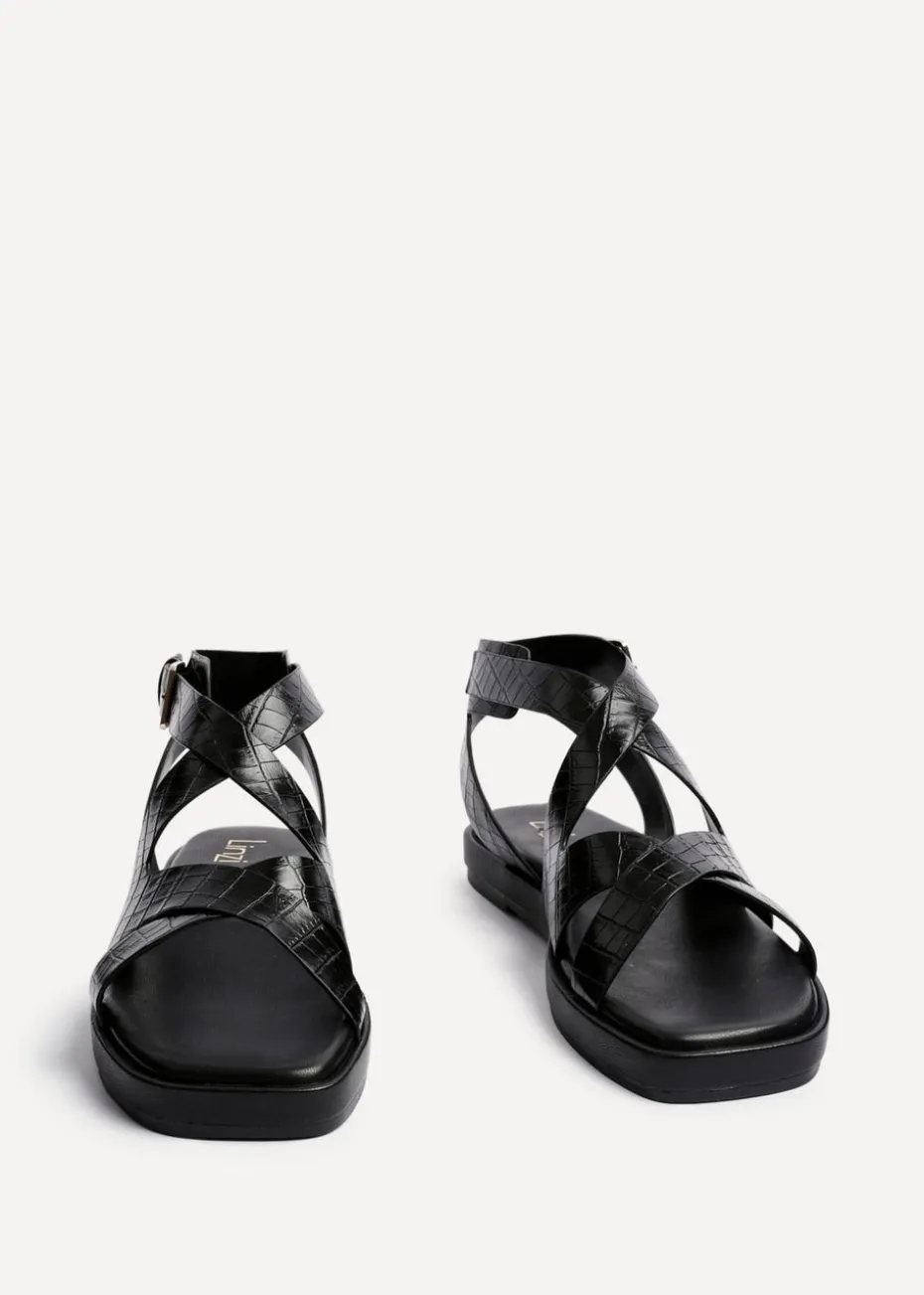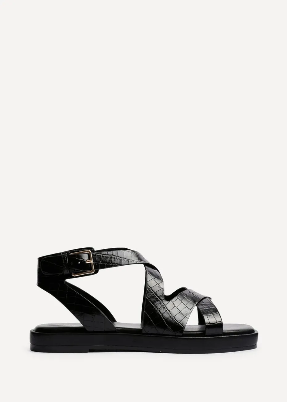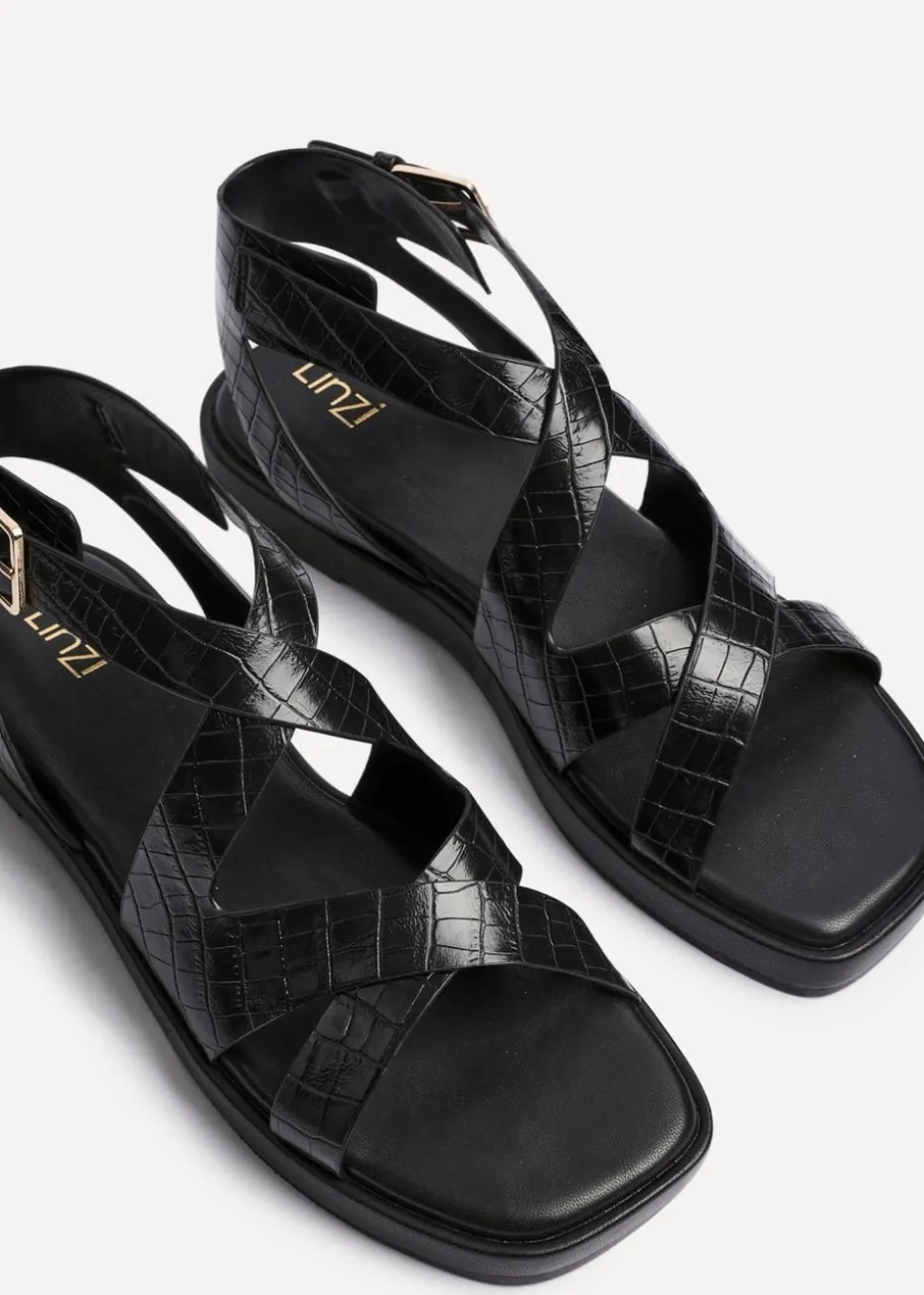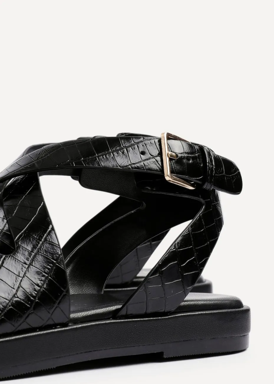 Be the first to review “Linzi Soho Black Faux Croc Patent Leather Strappy Sandals” Cancel reply