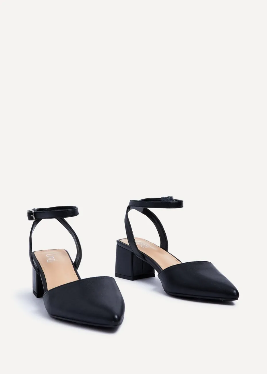 Linzi Suzy Wide Fit Black Faux Leather Court Heel