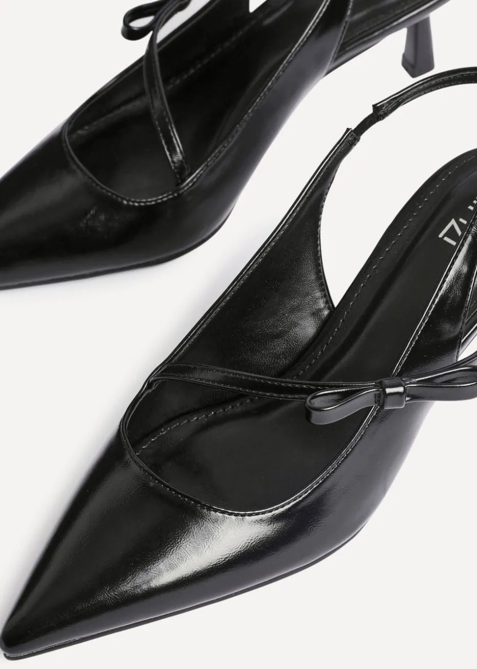 Our Timeless court heel exudes elegance with it’s pointed toe and delicate bow strap. These sophisticated courts feature a slingback and a 5.5cm stiletto heel, adding a touch of refinement. Designed with a cushioned insole, every step is a comfortable one.