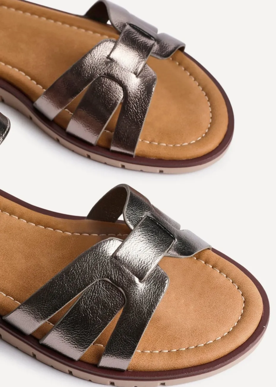 Linzi Twirl Wide Fit Pewter Faux Leather Two Part Sandal